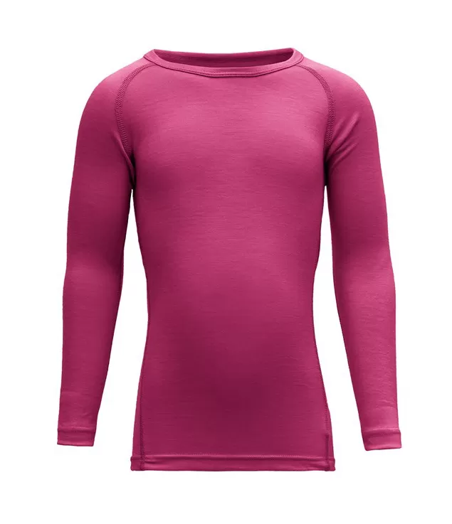 Rozā termiski garās piedurknes ar apaļu apkakli. DEVOLD Breeze kolekcija piedāvā īpaši plānus merīnvilnas apģērbus, kas apstrādāti ar Total Easy Care tehnoloģiju, kas ir viegli, ļoti elpojoši un ir velnišķīgi. Šie apģērbi ir īpaši piemēroti tiem, kam ir alerģija pret vilnu un cilvēkiem ar jutīgu ādu, jo merino vilna palīdz nomierināt sakairinātu ādu un atvieglo ekzēmas simptomus.
