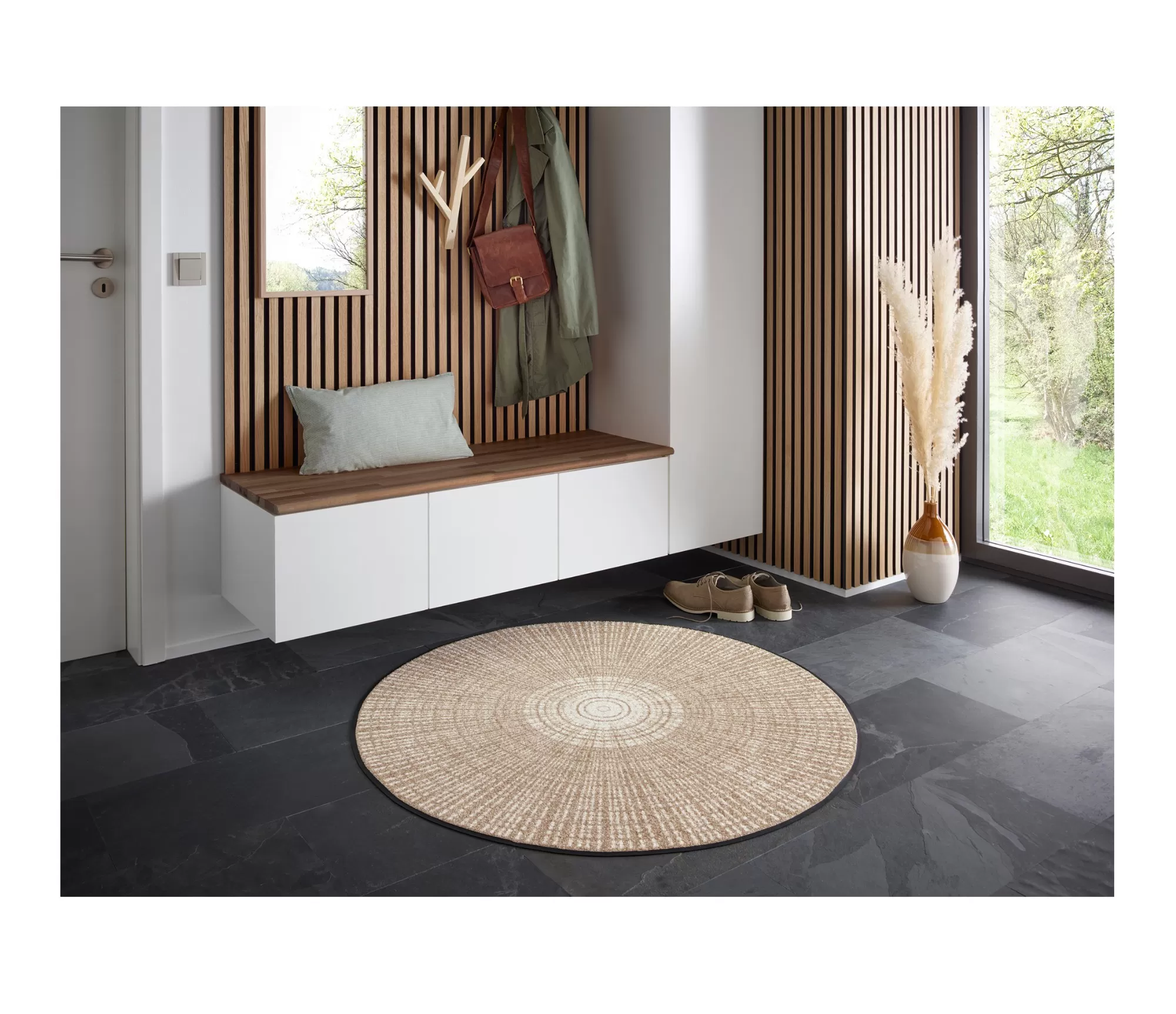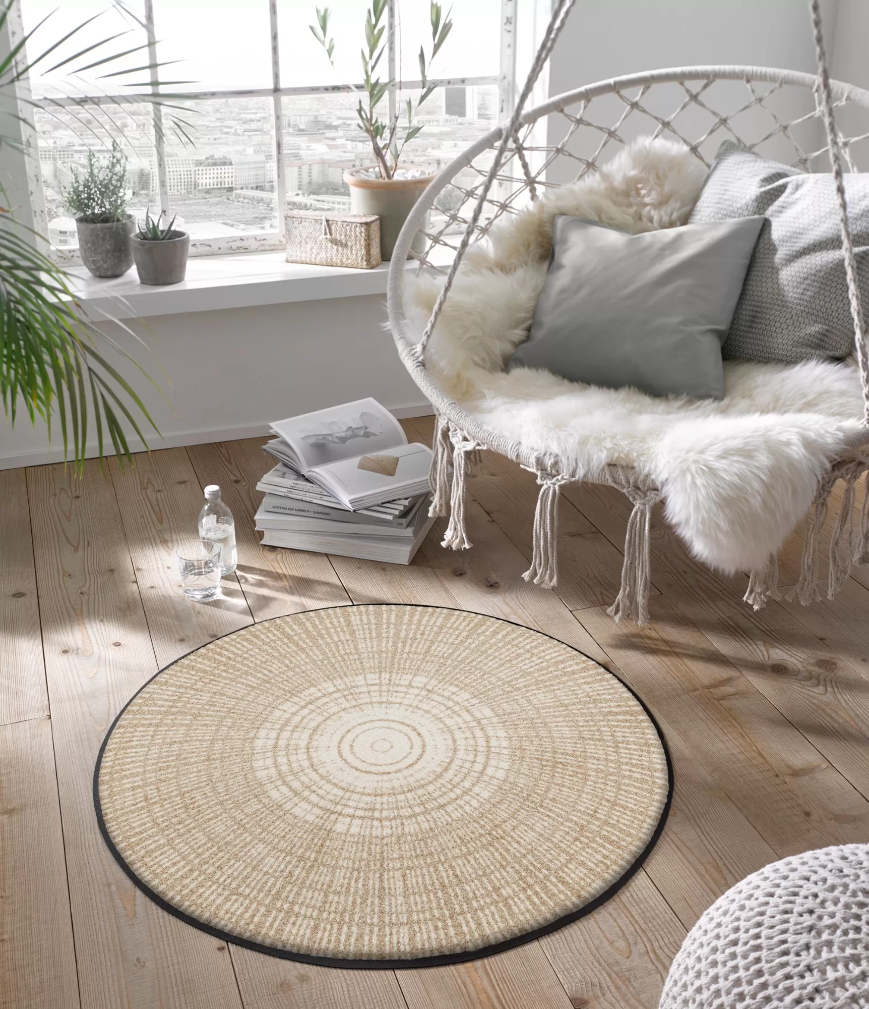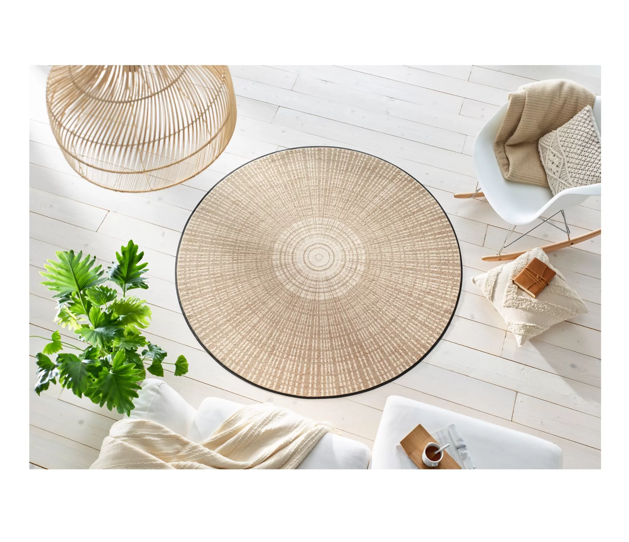 Vai jums patīk apaļie bēšie paklāji? Vai jums nepieciešams paklājs zem apaļā galda?