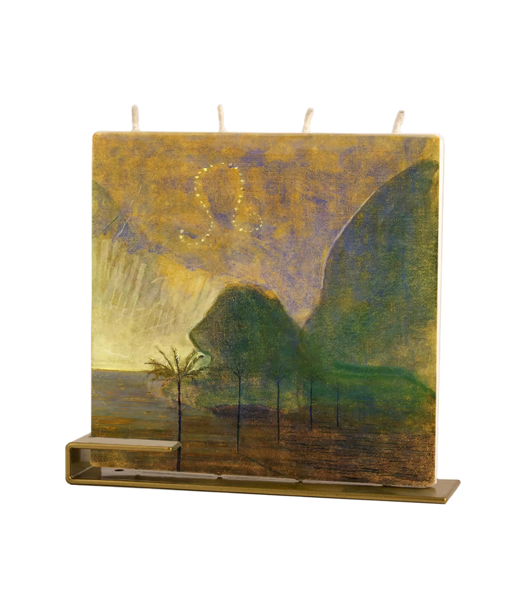 Ar rokām darināta svece ar zīmi M.K. Čiurlioņa darbs “Saule iet Lauvas zīmē” ir meistarīgi ar rokām apgleznota svece, kas var būt brīnišķīga dāvana jebkurā gadījumā.