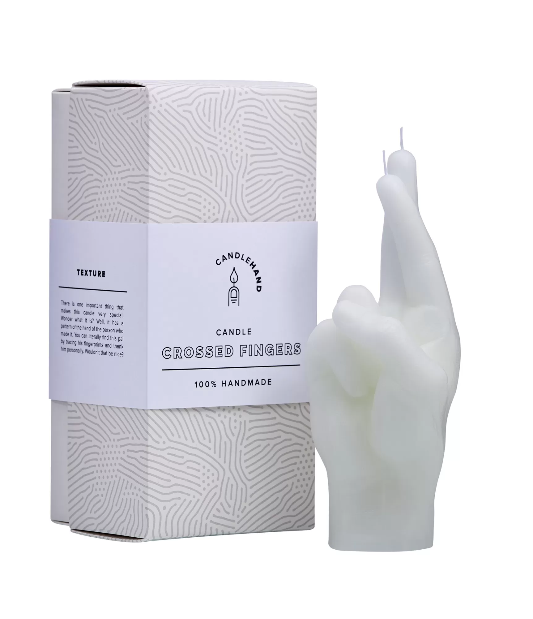 Ar rokām darināta svece Sakrustotiem pirkstiem balta – šī ir jūsu dāvanu ideja jebkuram gadījumam.