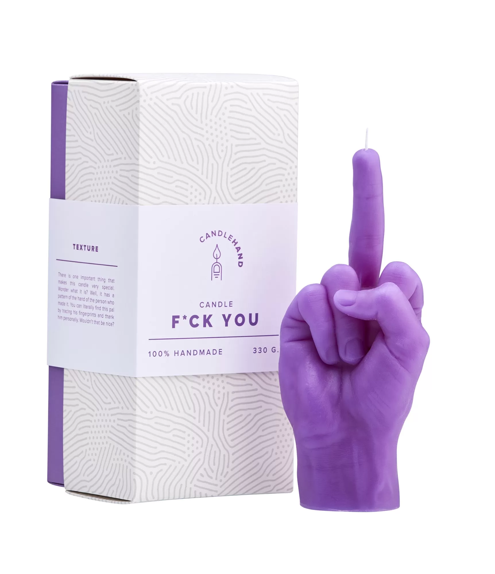 Violetas sveces ar rokas žestu “ F*CK YOU “ ir lieliska dāvana draudzenei dzimšanas dienā, jo tas ir stils, oriģinalitāte, praktiskums un interjera dekorēšana. Šī ir svece, kas nevienu neatstās vienaldzīgu.