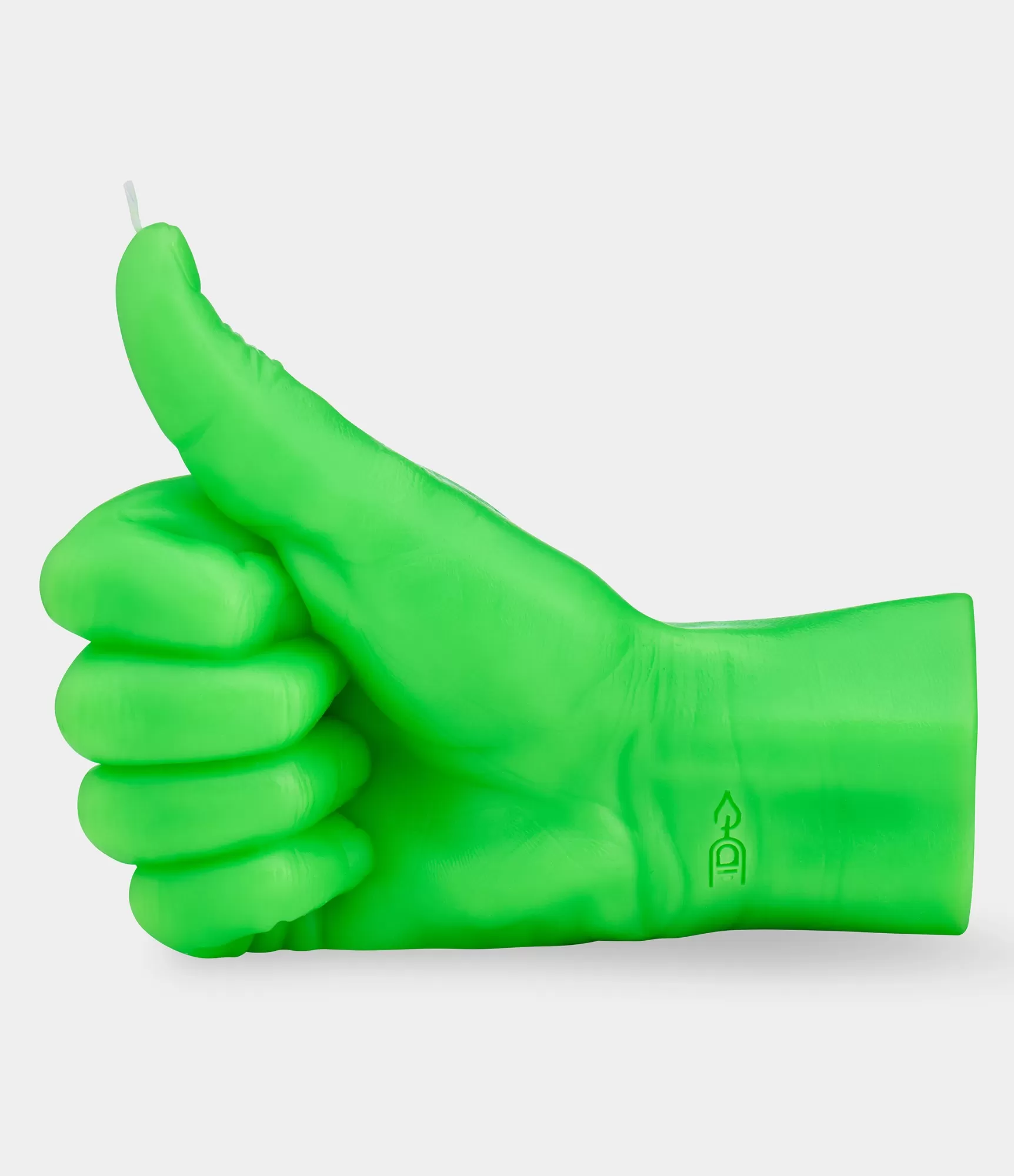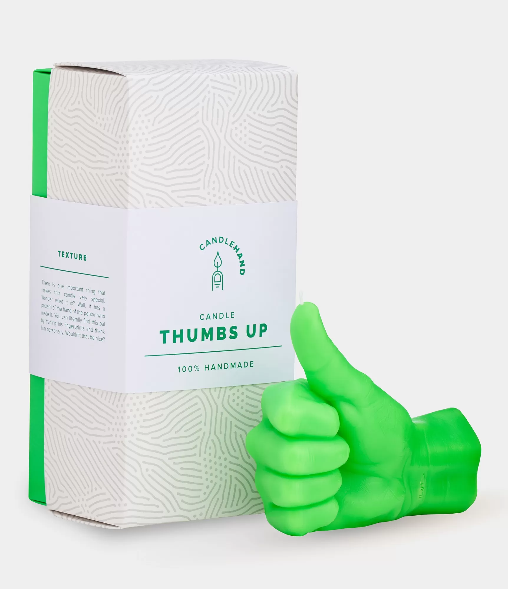 Ar rokām darināta svece Thumbs Up Neona Green – mēs nospiežam pogu Labi, kad ir nepieciešama īpaša dāvana