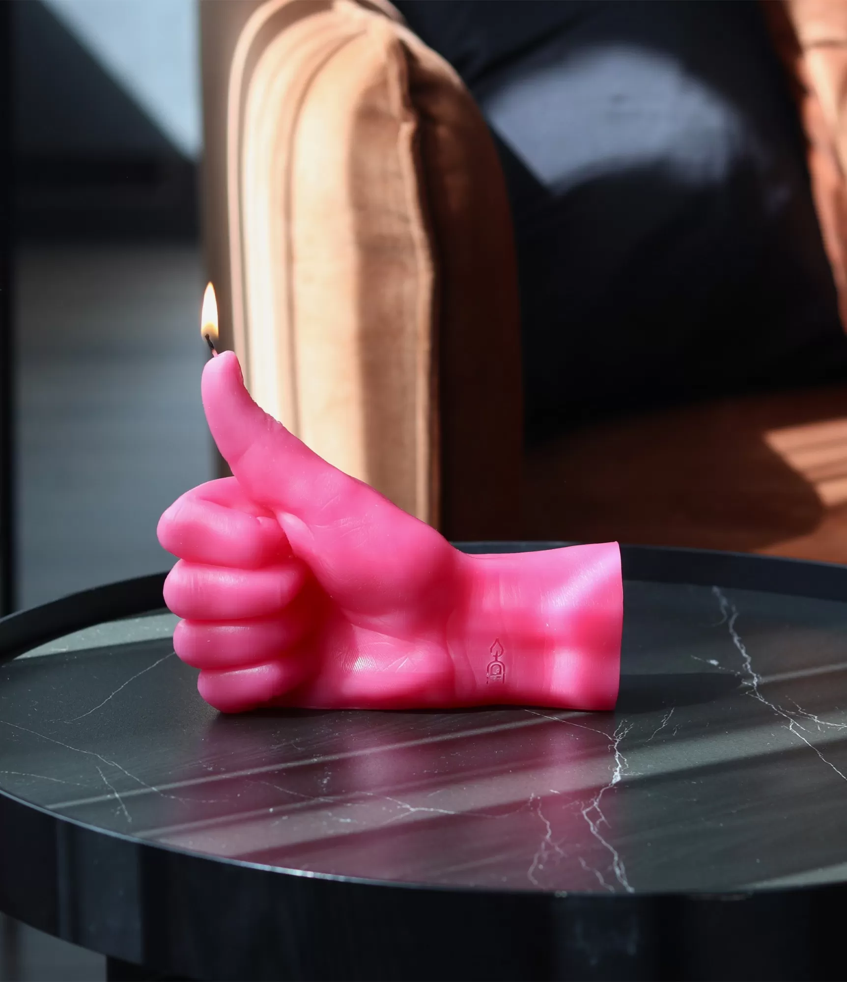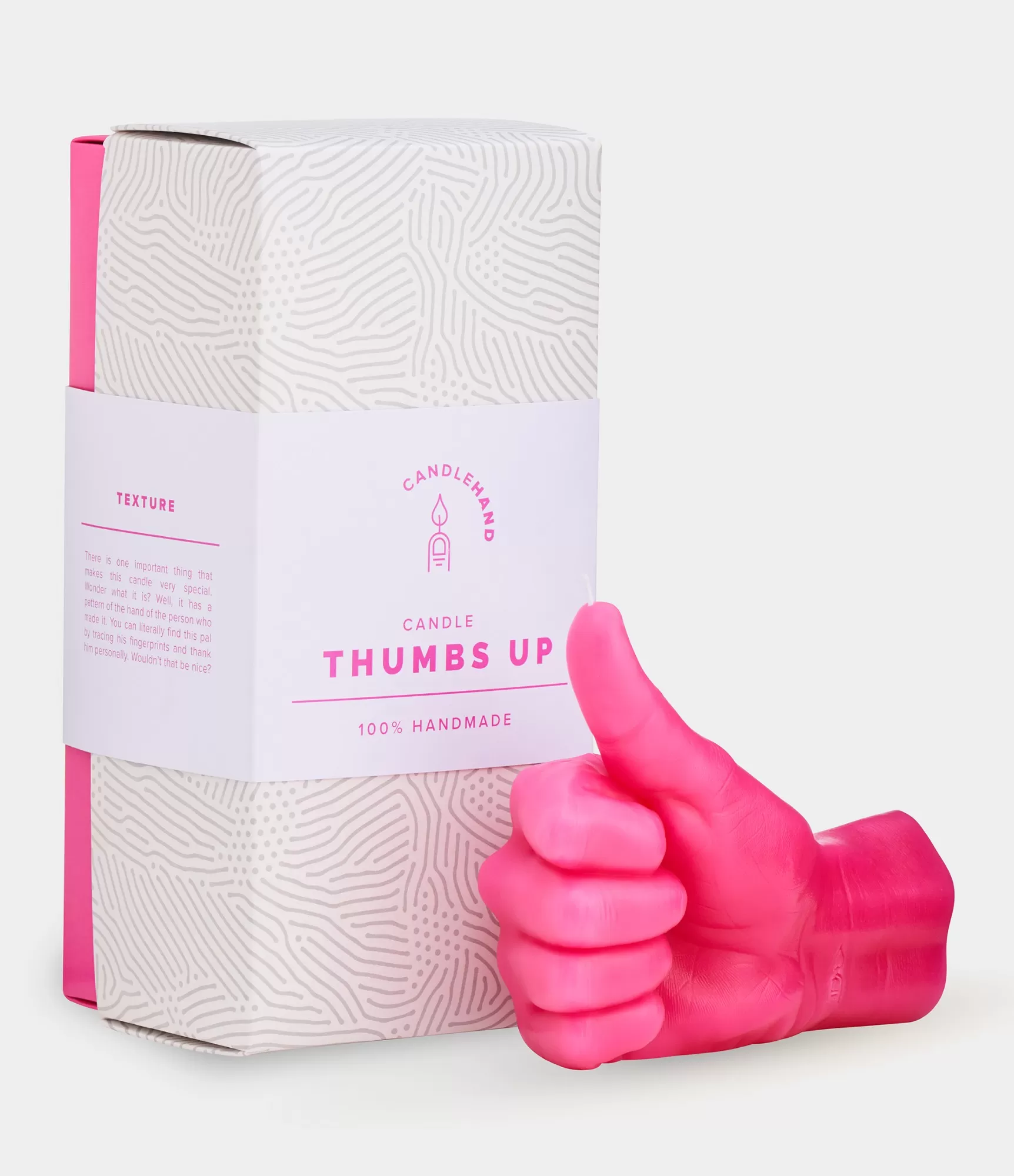 Ar rokām darināta svece Thumbs Up Pink – nospiežam „Patīk“ pogu, kad nepieciešamas išīpašas dāvanas sievietēm un vīriešiem dažādiem gadījumiem.