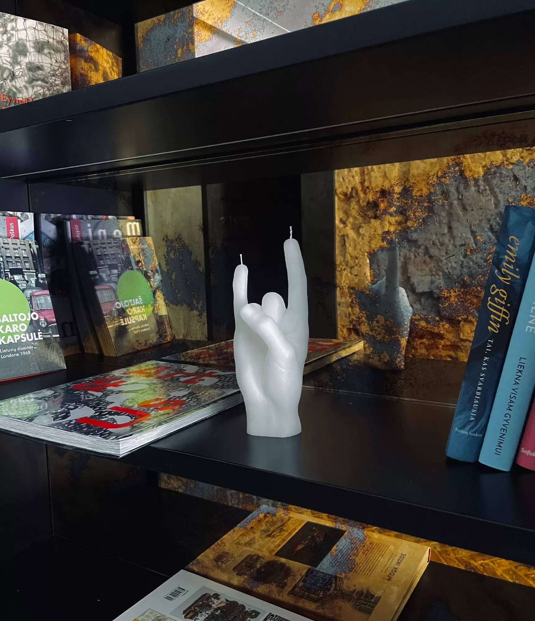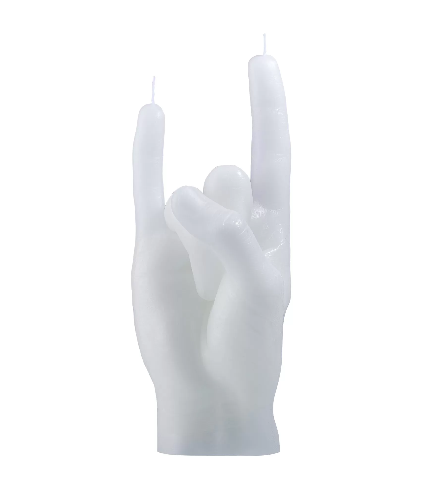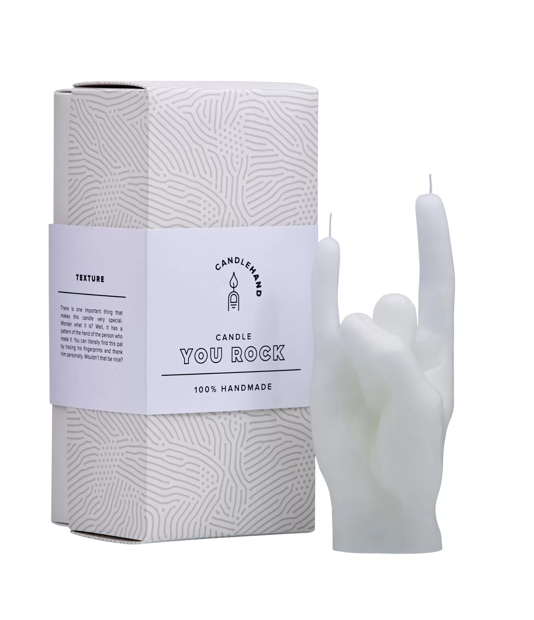 Ar rokām darināta svece You Rock White – ideāla dāvana kāzās, dzimšanas dienās un citos gadījumos.