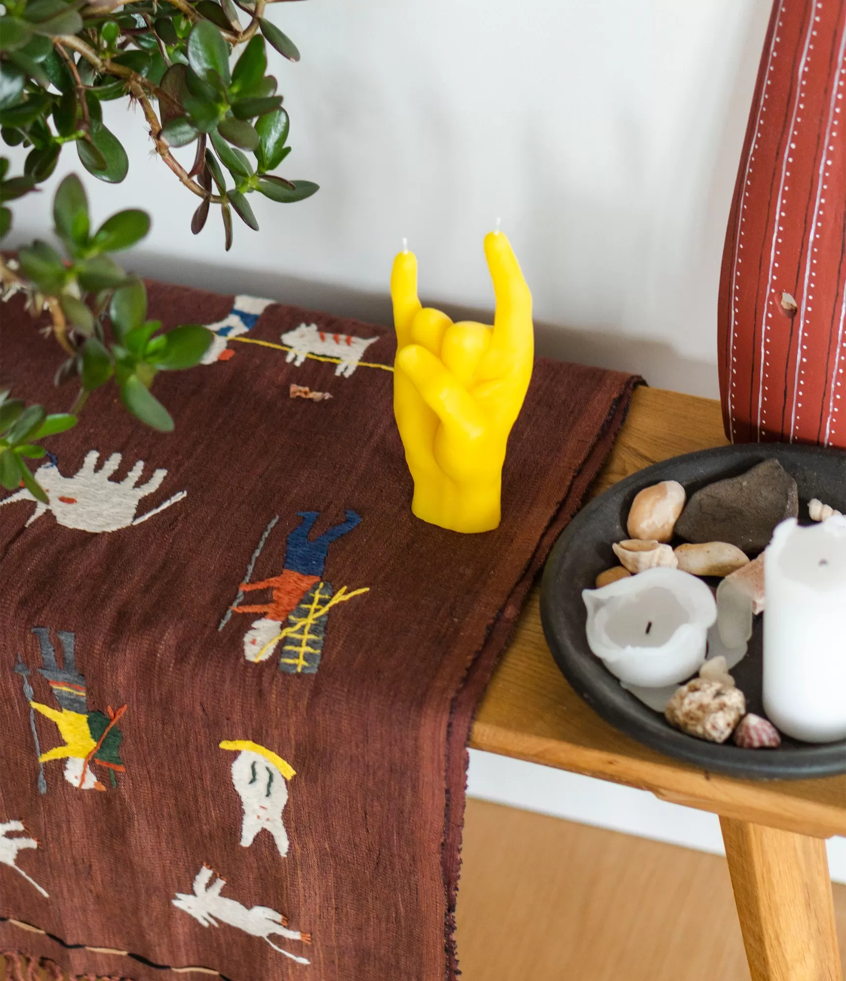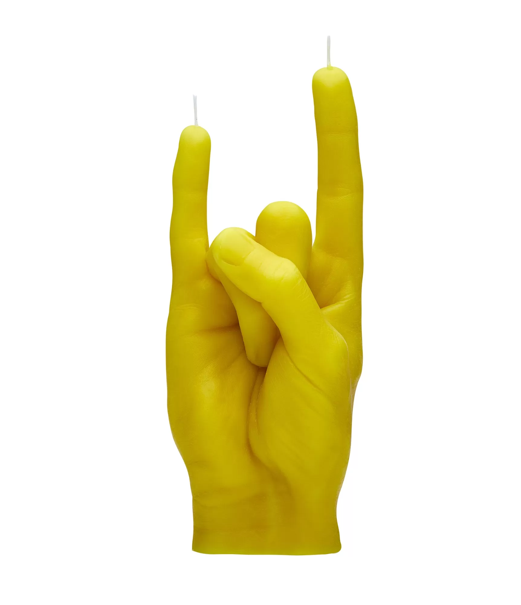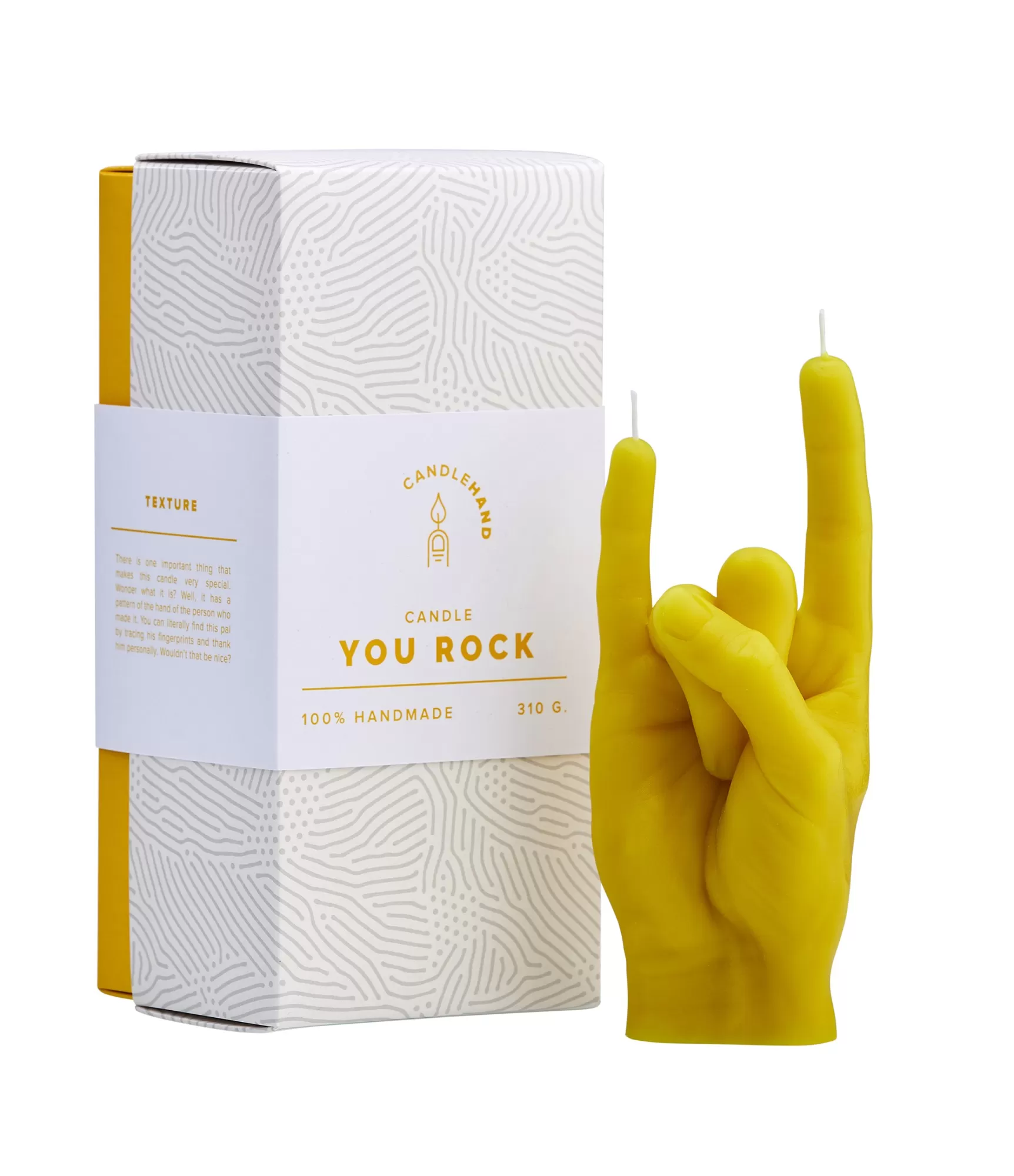 Ar rokām darināta svece You Rock Yellow – vai tās varētu būt dāvanas vecākiem? Kāpēc gan ne, ja viņiem ir lieliska humora izjūta.