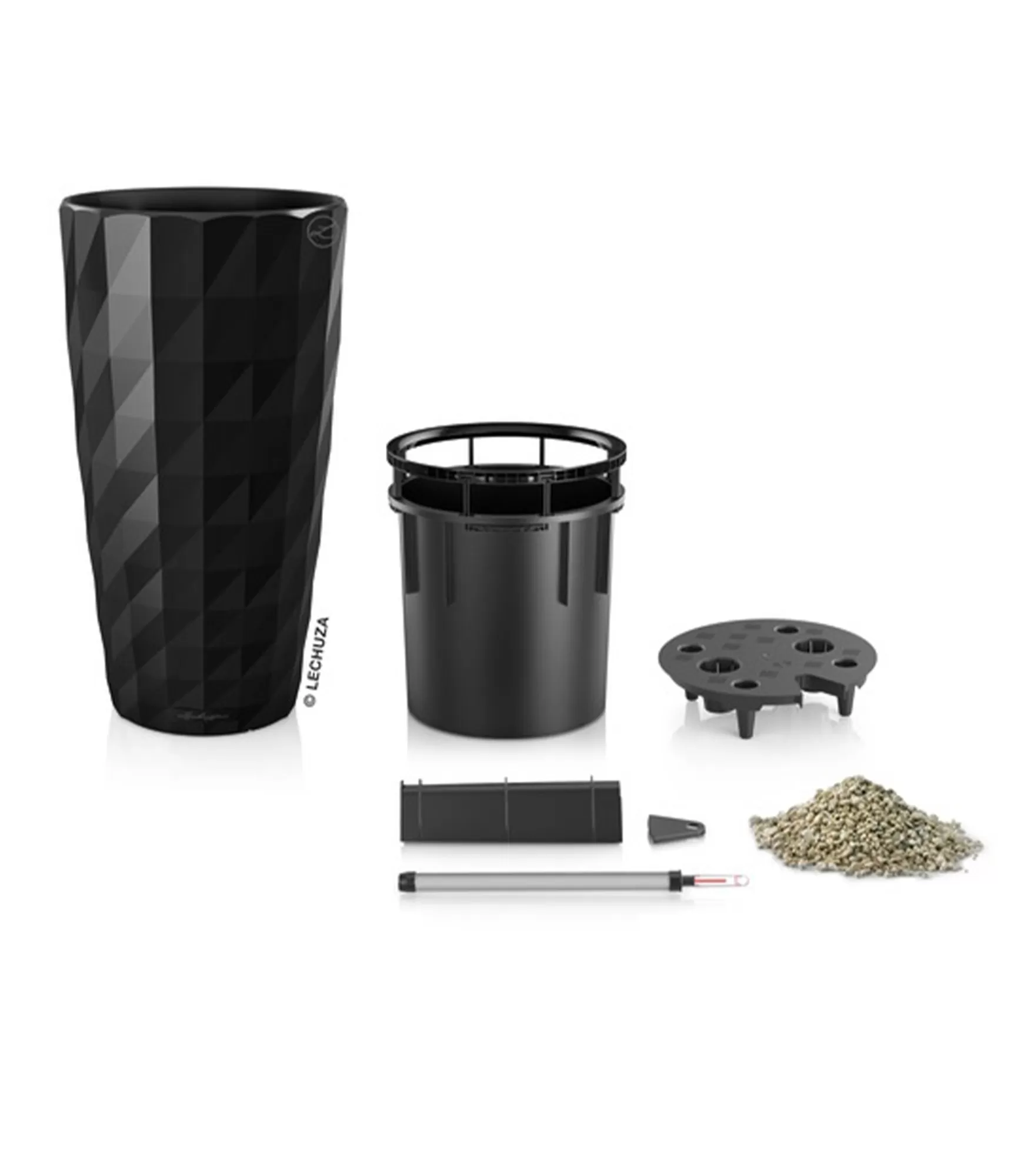 Visi LECHUZA puķu podi ietver ārējo podu un laistīšanas sistēmu, kas nodrošina labāku augu augšanu.