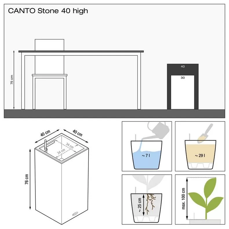 Visi LECHUZA podi ir aprīkoti ar ārējo podu un laistīšanas sistēmu, kas nodrošina labāku augu augšanu.