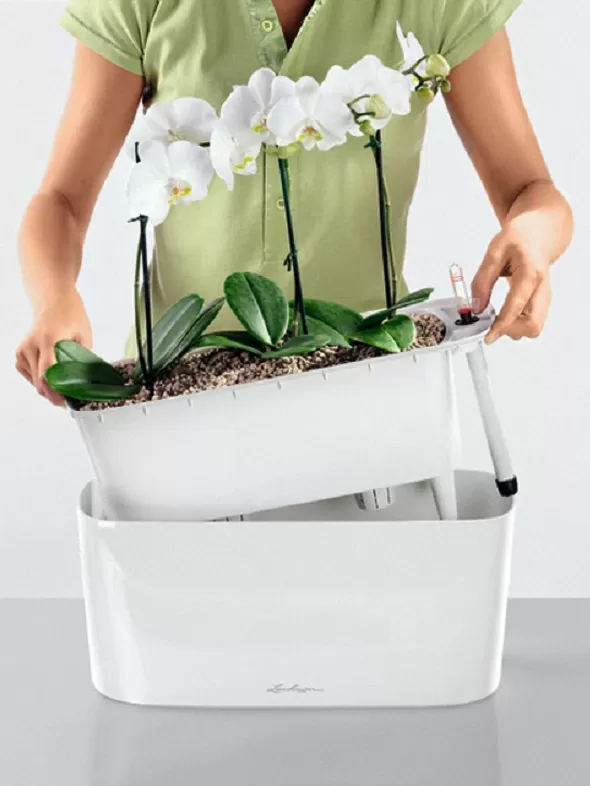 LECHUZA podu laistīšanas sistēma rūpējas par jūsu augiem līdz 12 nedēļām, nodrošinot viņiem pareizu ūdens un barības vielu daudzumu optimālai augšanai.