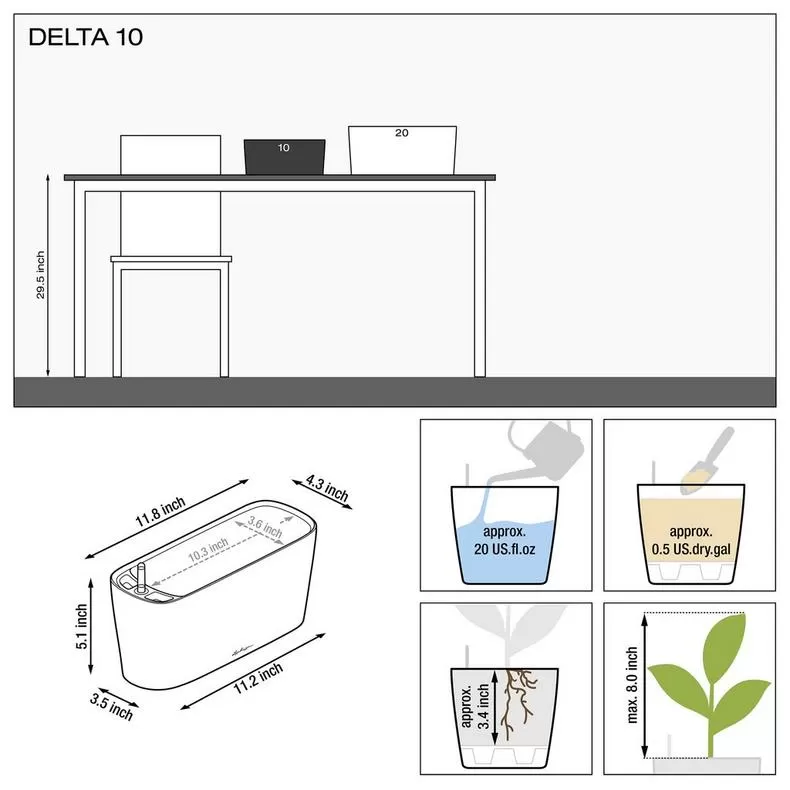 LECHUZA podu laistīšanas sistēma rūpējas par jūsu augiem līdz 12 nedēļām, nodrošinot viņiem pareizu ūdens un barības vielu daudzumu optimālai augšanai.