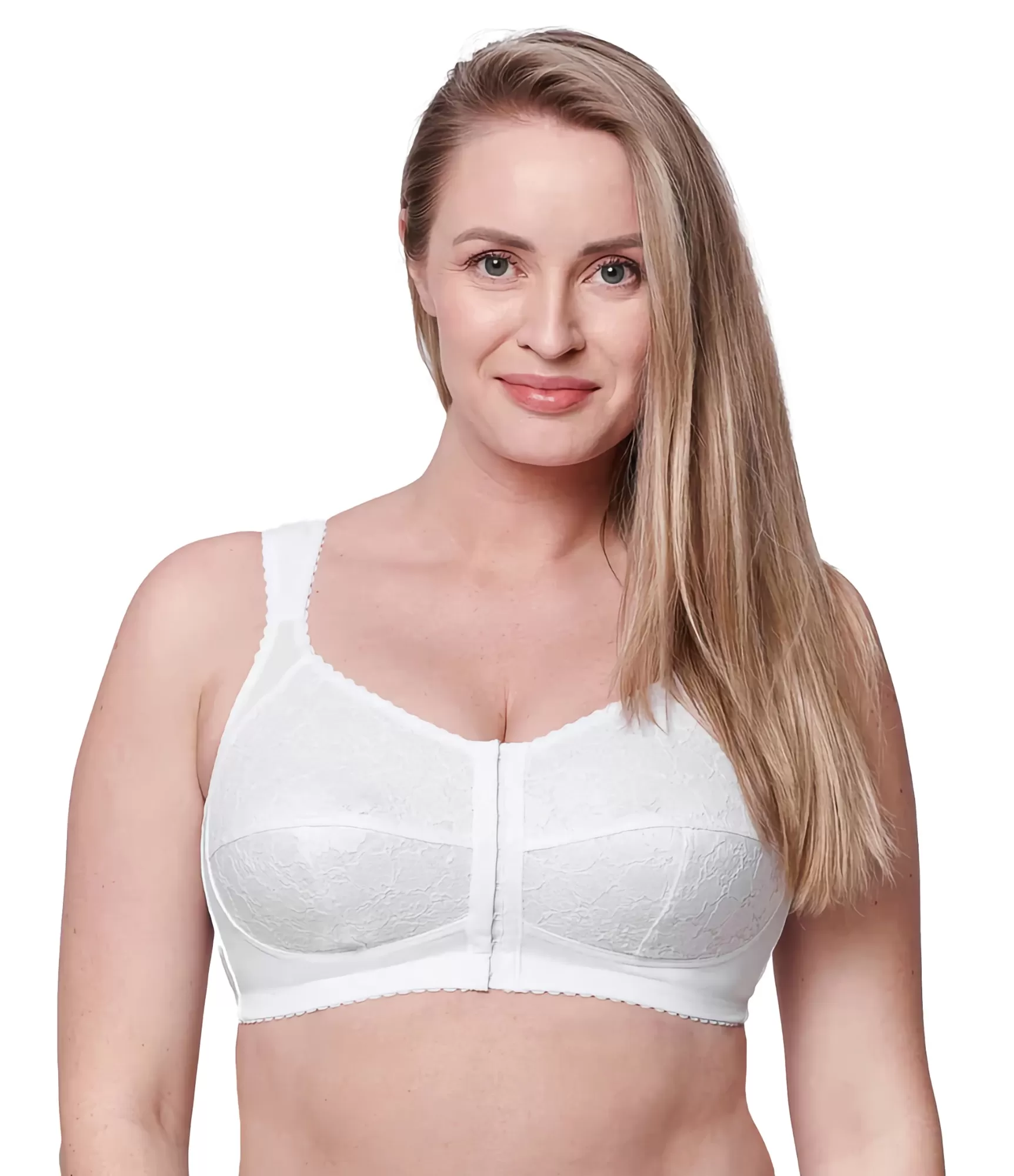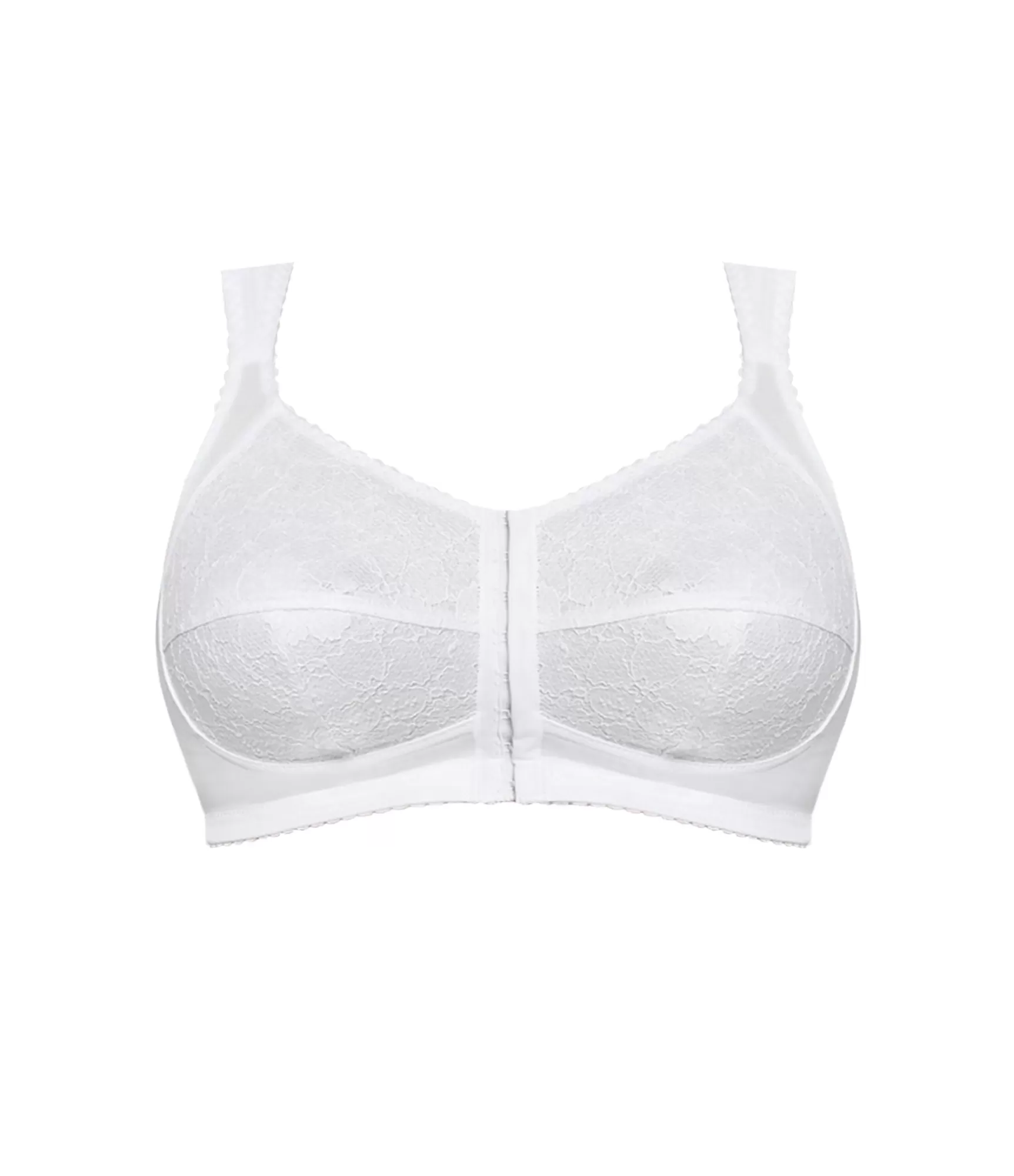 Ērts un stabils krūšturis bez stieples, aizdare priekšpusē – tā ir ideāla izvēle sievietēm ar lielākām krūtīm. Pateicoties īpašajam muguras daļas dizainam, jūsu mugura ir mazāk nogurusi, jo palīdz to noturēt taisnāku. T-veida, augsti krūštura kausiņi veido konusveida krūšu siluetu. Krūštura apakšdaļa ir dekorēta ar mežģīnēm un papildus pastiprināta ar plānu kokvilnas oderi. Krūštura siksnas ir platas, reljefas siksnas nodrošina komfortu, neiegriežas, nespiež un patiešām atbalsta lielāku krūti.