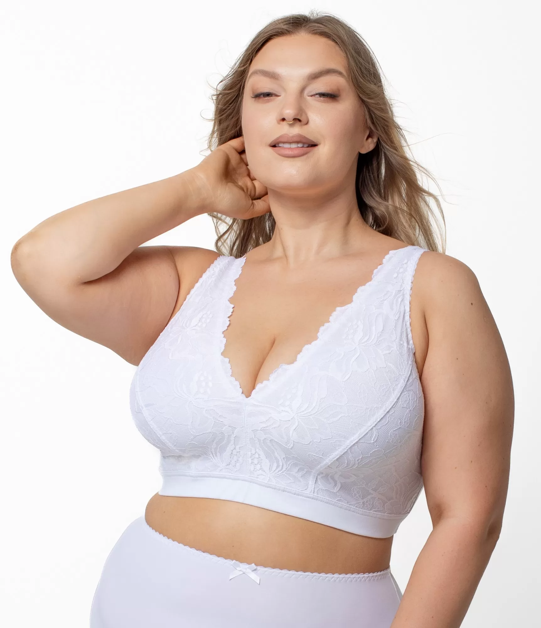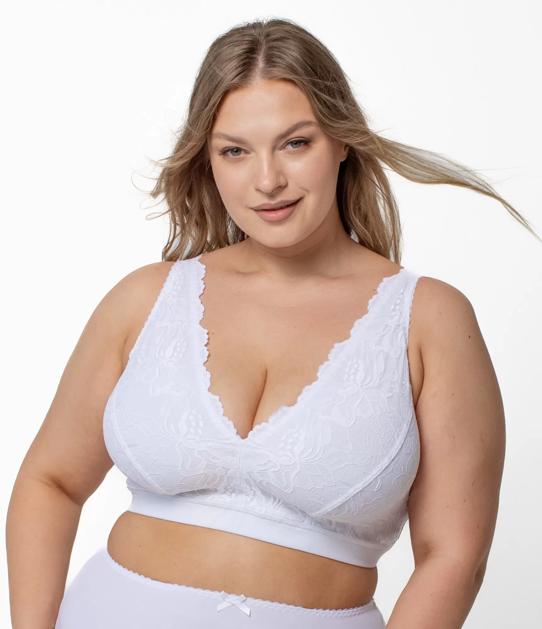Ši kokvilnas krūšturis Freya vizuāli atgādina braleti, taču ir stingrāks, stabilāks un vairāk piemērots lielākām krūtīm. Šis ir kokvilnas krūšturis, kas dekorēts ar skaistām mežģīnēm. V-veida matu griezums ir elegants, jo tas ierāmē krūtis. Kates biksītes lieliski sader ar šo krūšturi.