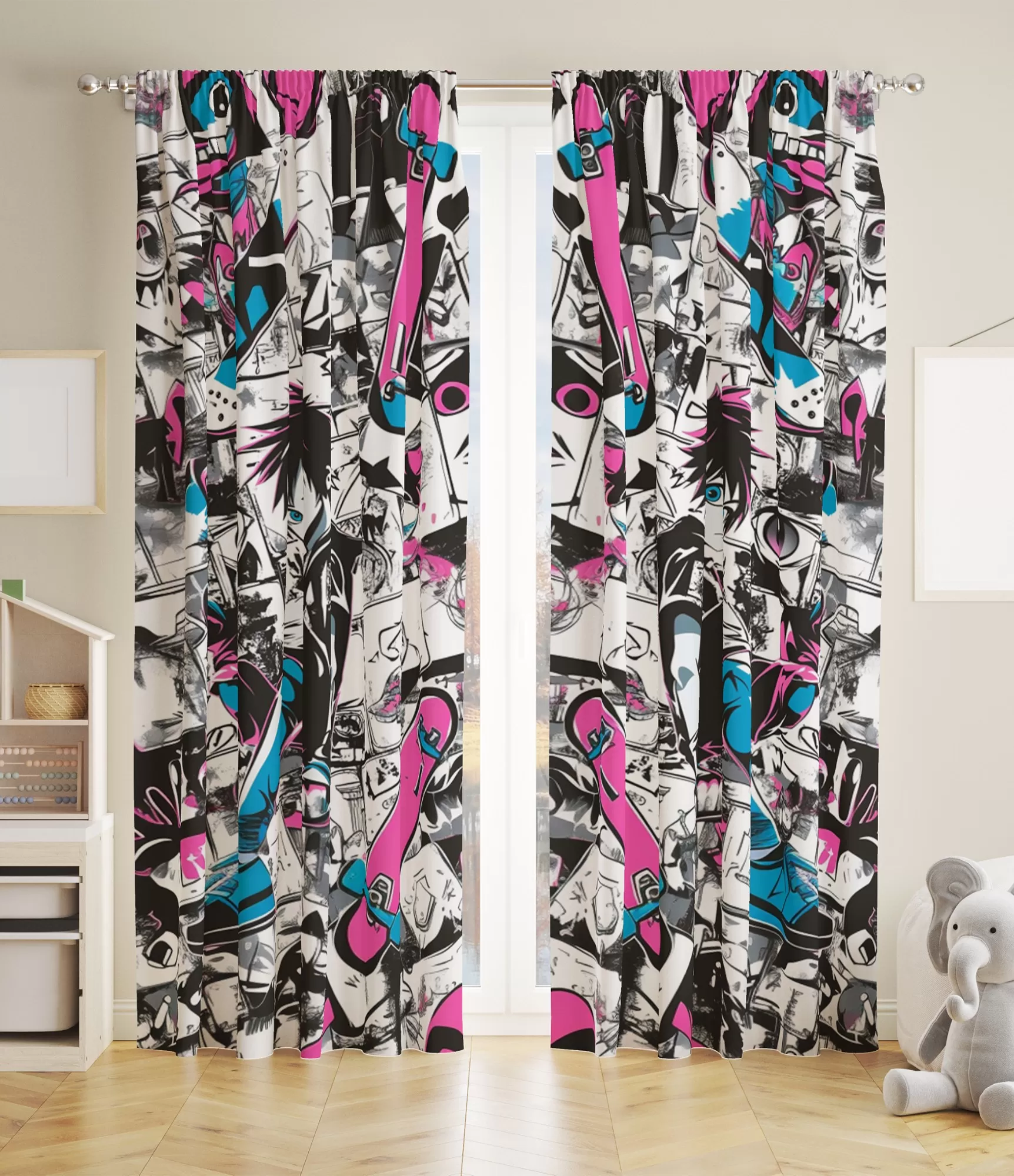 Mēs vēlamies, lai bērnu aizkari būtu dzīvotspējīgi, ar krāsainiem attēliem un elementiem. Tas stimulē bērnu iztēli, atbilst viņu interesēm, kā arī piešķir istabai prieku un dzīvotspēju. Šie bērnu aizkari ir ļoti praktiski, izstrādāti tā, lai būtu viegli kopjami un mazgājami. Atkarībā no izvēlētā aizkaru auduma, aizkari pilda savu funkciju un regulē gaismas daudzumu telpā dienas vai nakts laikā.