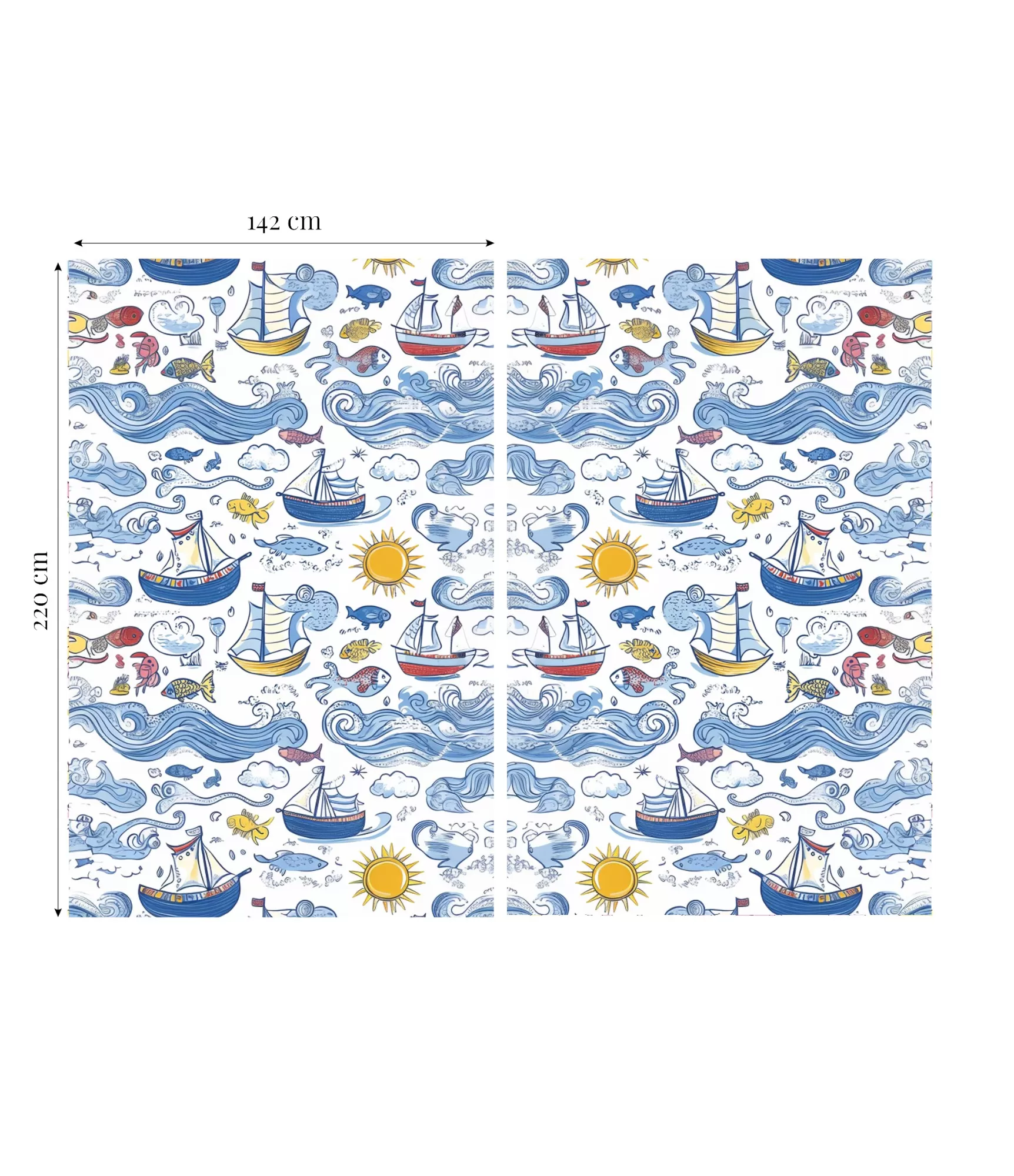 Aizkaru komplekta kopējais platums ir aptuveni 284 cm, katrs panelis ir aptuveni 142 cm plats.