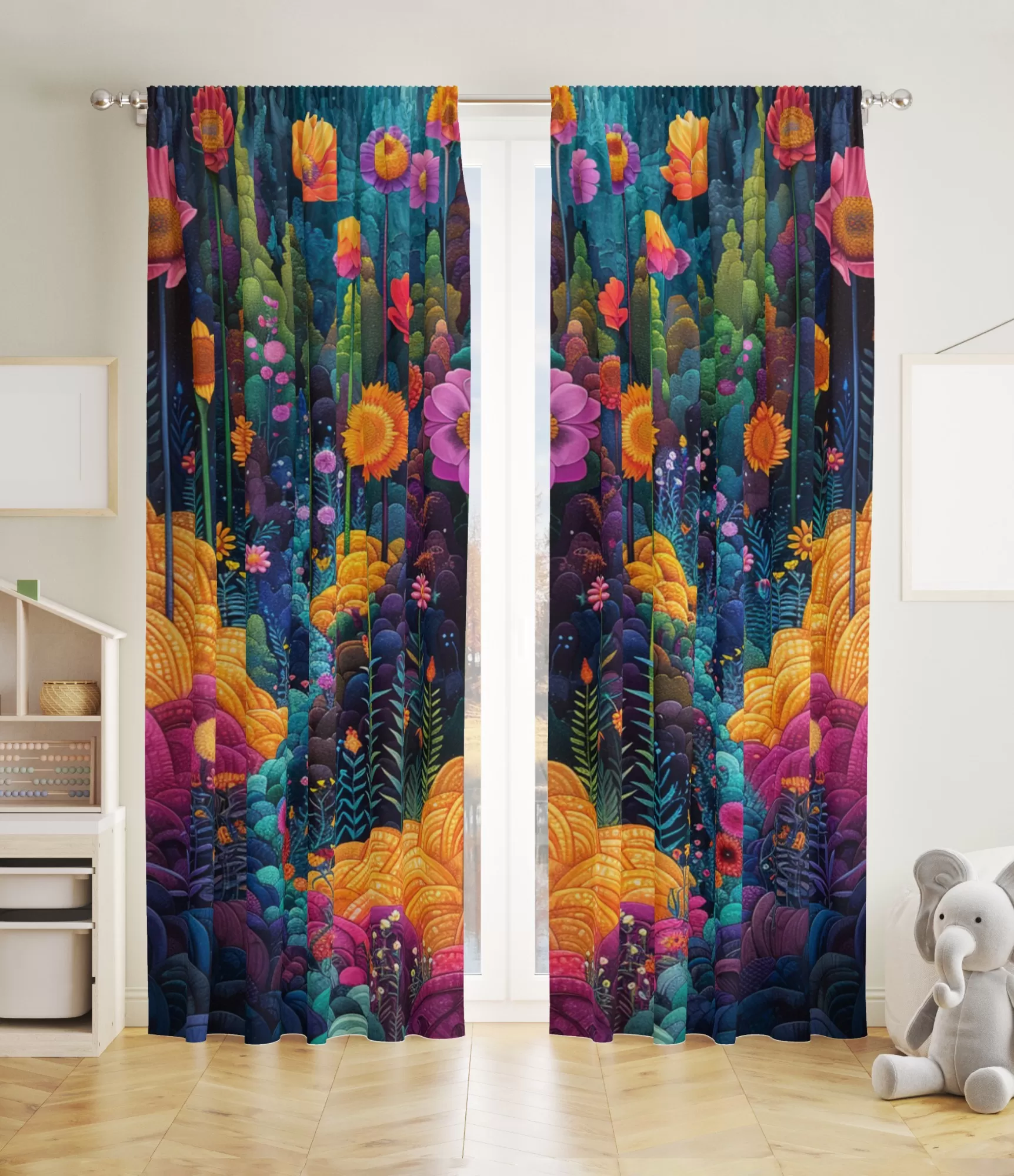 Krāsainie aizkari bērnu istabai piešķir tai rotaļīgumu un siltumu, bagātina telpas telpu ar interesantām krāsām un tēliem. Šie aizkari stimulē bērnu radošumu un ļauj viņiem paplašināt pasaules uztveri, ļaujot baudīt brīnišķīgus motīvus un attēlus.