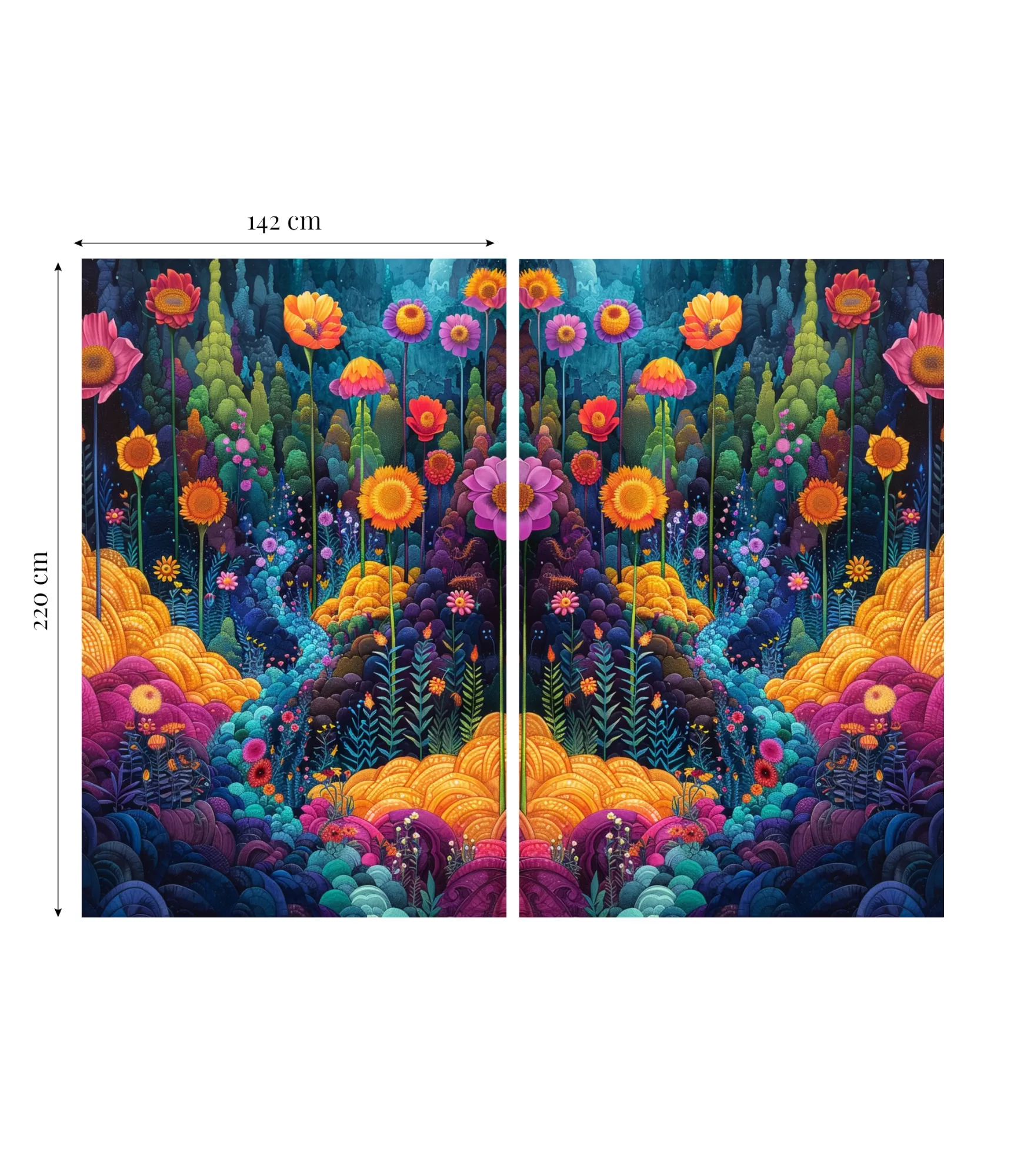 Aizkaru komplekta platums kopā ~ 284 cm, kad vienas daļas platums ir ~ 142 cm.