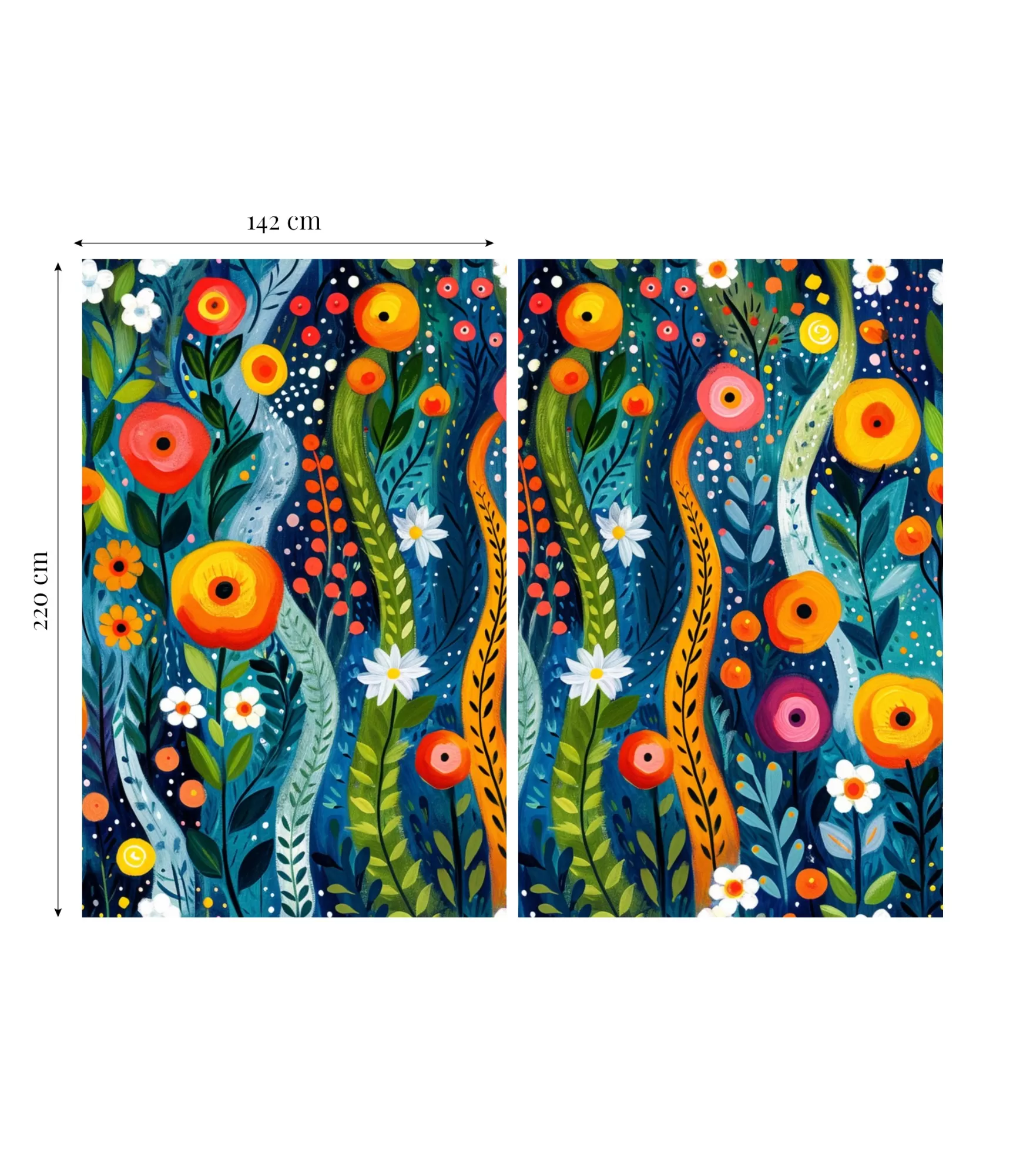 Aizkaru komplekta platums kopā ~ 284 cm, kad vienas daļas platums ir ~ 142 cm.