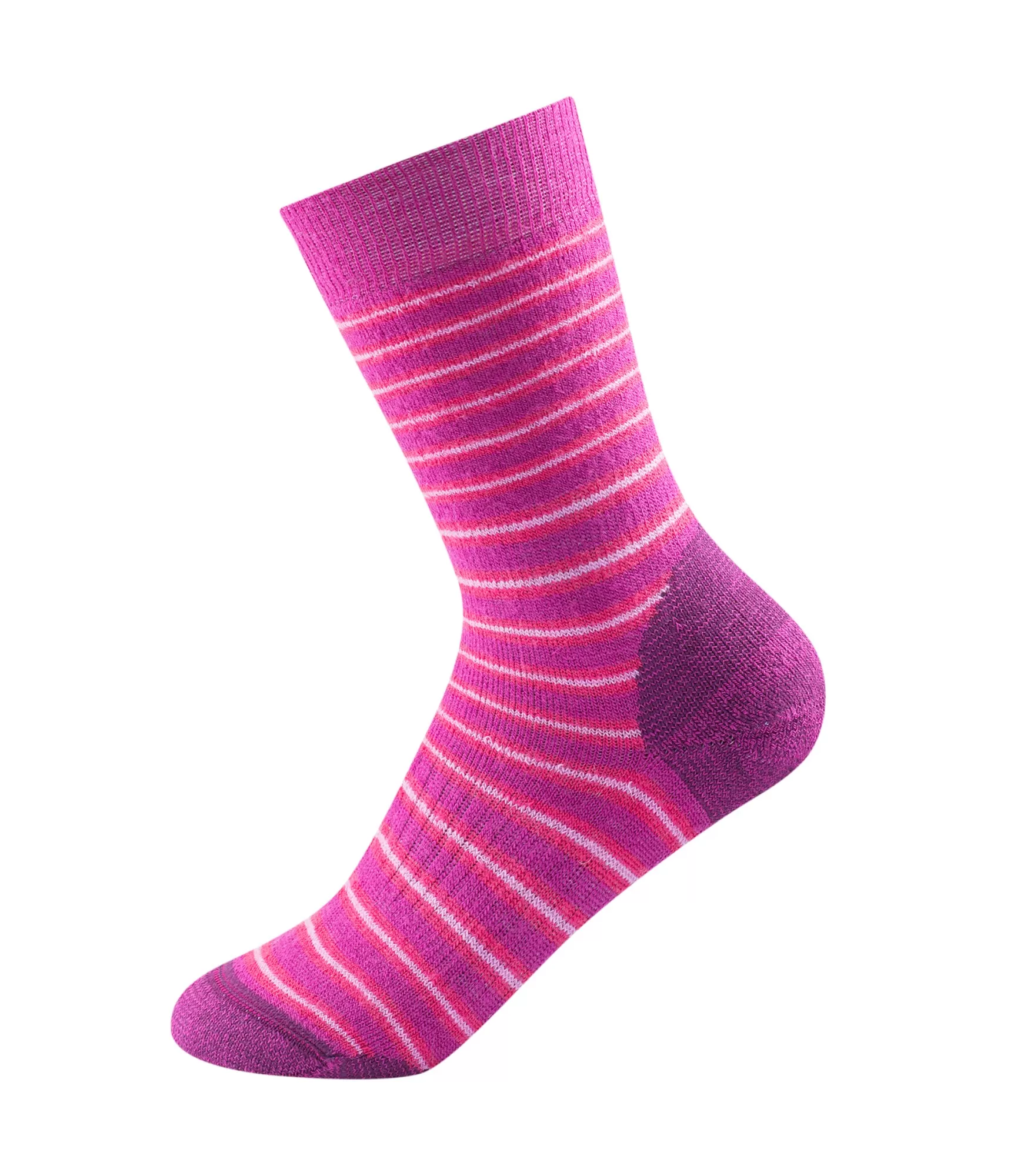 Vidēja garuma bērnu zeķes ir paredzētas pārgājieniem, kempingiem un brīvajam laikam pie dabas. Zeķu galvenā krāsa ir rozā. Pirkstu un papēžu zonas ir pastiprinātas, lai nodrošinātu papildu izturību. Zeķu vidusdaļā ir funkcionāls adīšanas ritenis.
