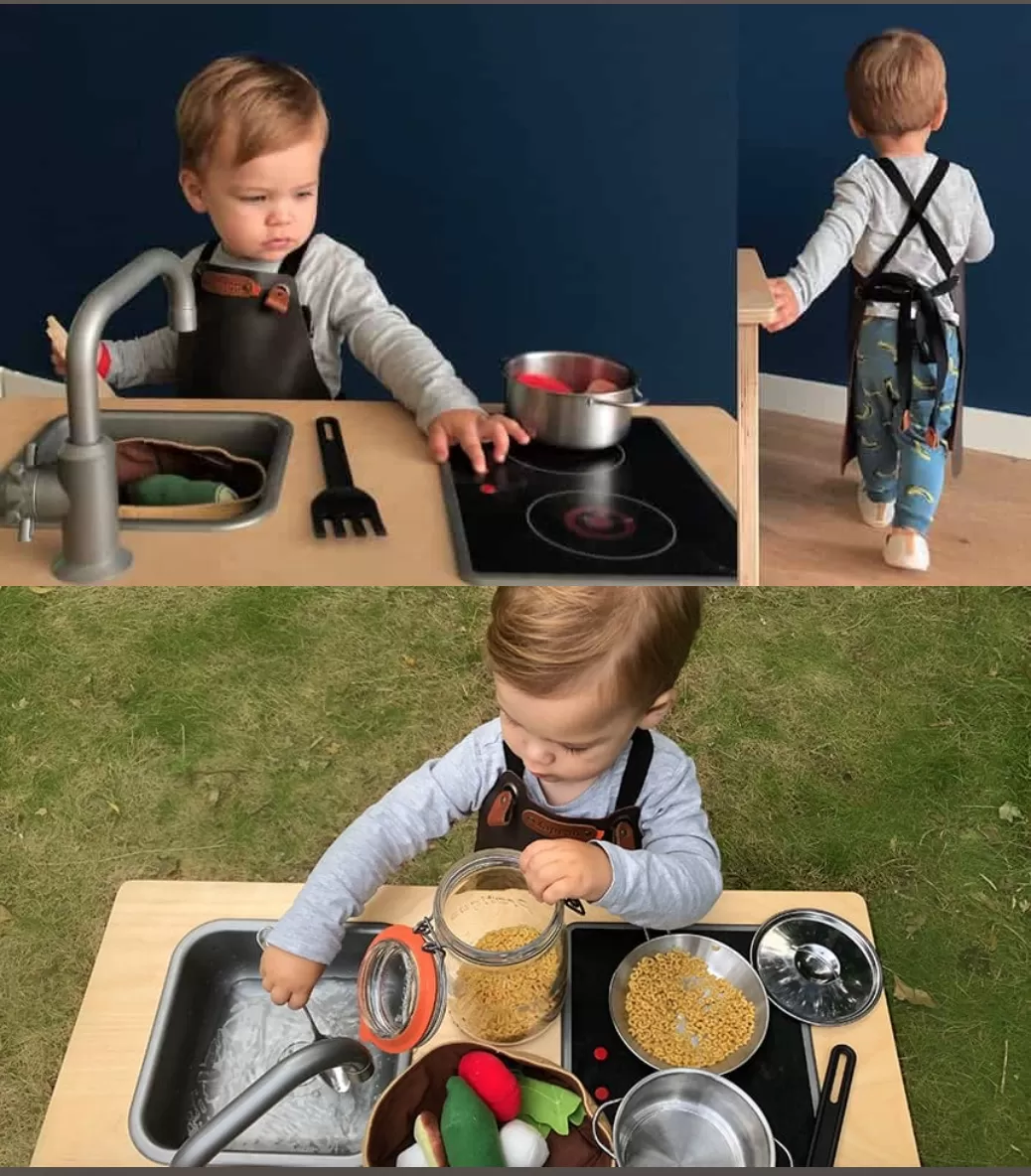 Katrs bērns augot vēlas līdzināties savai mātei vai tēvam. Bērnu ādas priekšauts mazajiem pavāriem un BBQ palīgiem. Jūs varat pavadīt laiku kopā ar bērniem, grilējot ēdienu vai, iespējams, cepot cepumus virtuvē. Kolekcijas priekšauti ir piemēroti bērniem no 3 līdz 8 gadu vecumam. Bērnu priekšautam ir viens modelis un trīs krāsas. Katram priekšautam ir kokvilnas lente, kuras garums ir līdz 1 metram. Roku darbs priekšauts izgatavots iš Augstas kvalitātes mīksta itāļu āda.