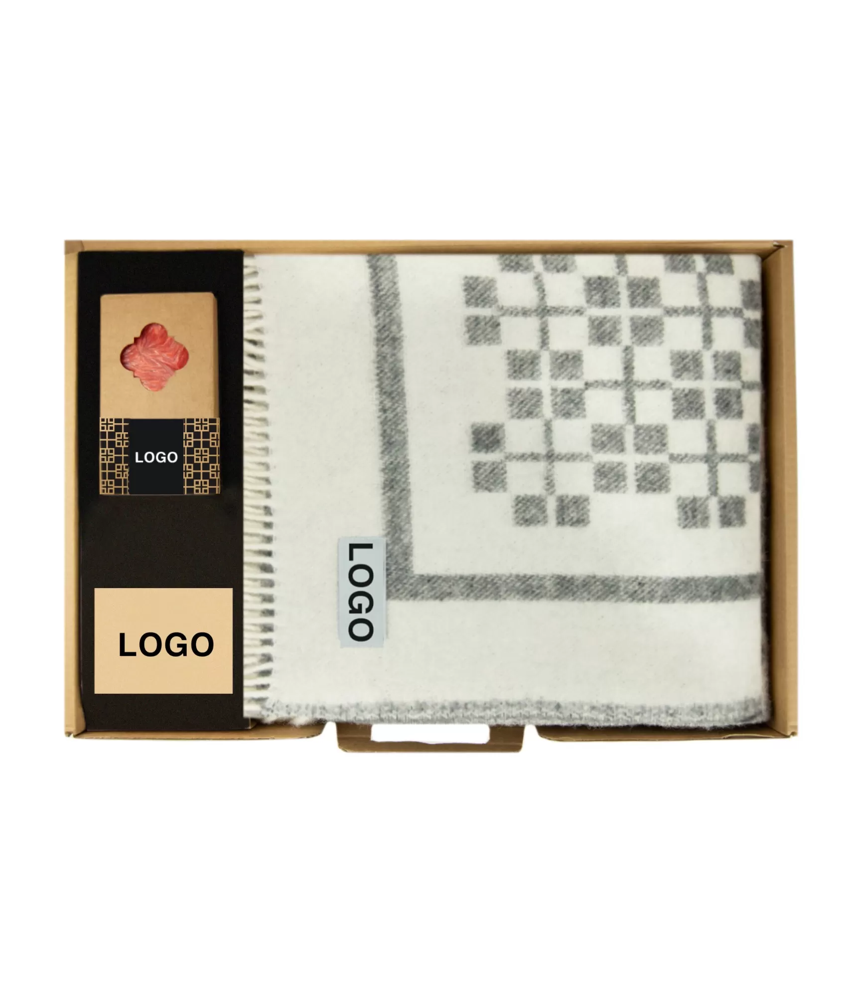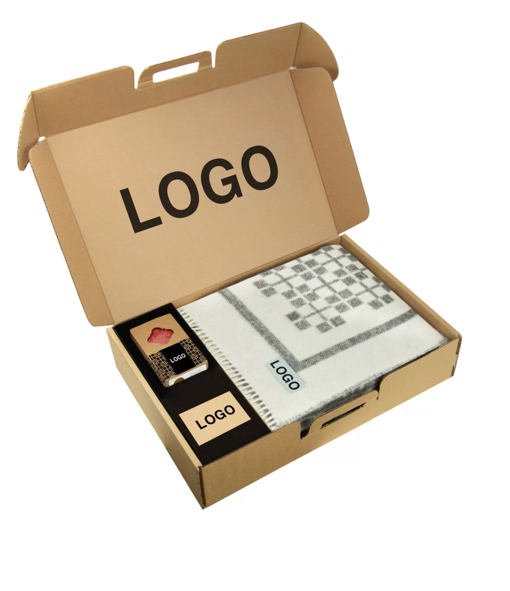• Komplekts ietver kastīti, vilnas pledu un sveci bez uzņēmuma logotipiem.