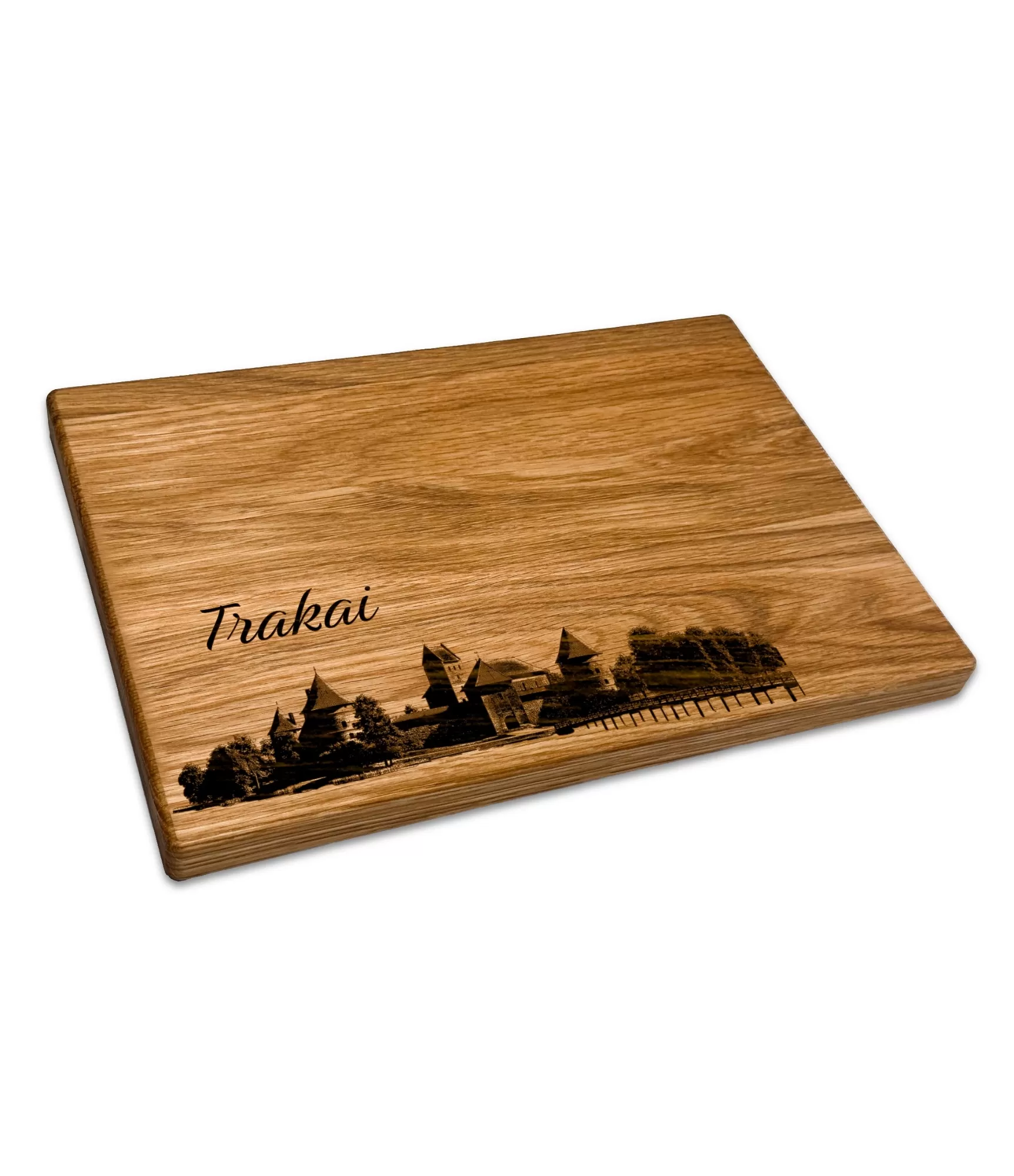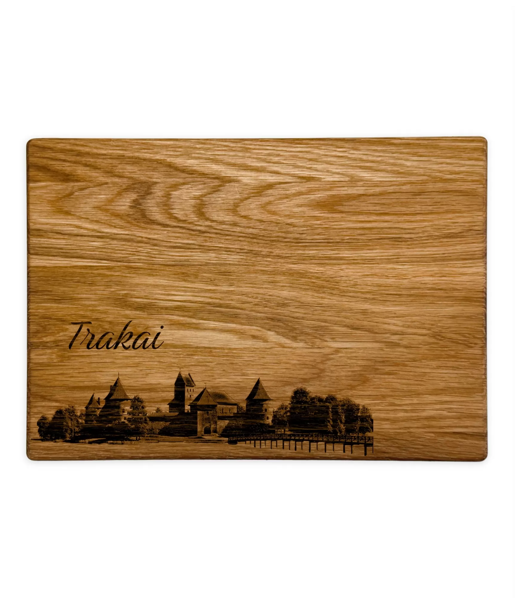 Koka griešanas dēlis ar iegravētu Traķu pilsētas siluetu vai tās slavenākajiem simboliem – tā ir unikāla biznesa dāvanas ideja, kas apvieno praktiskumu un tūrisma vērtību. Ozola virsma nodrošina izturību, un iegravētais dizains piešķir dāvanai emocionālu nozīmi. Šādu galdu var papildināt ar uzņēmuma logotipu, pateicības zīmīti vai pat personalizētu ziņu, tādējādi tas kļūst ne tikai par funkcionālu virtuves rīku, bet arī par unikālu atmiņu.