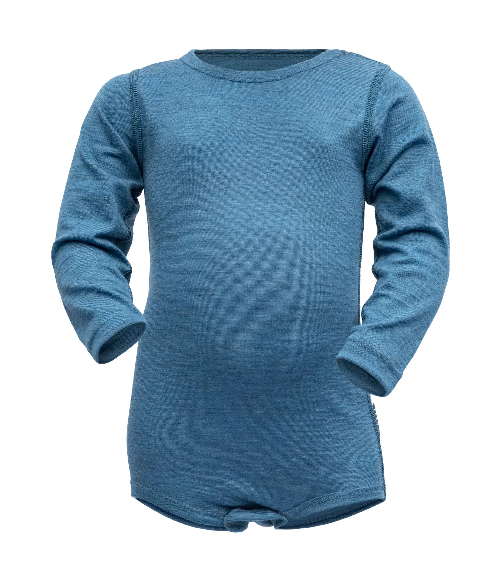 Zilās “Blue melange” krāsas Devold Breeze merino vilnas bodijs zīdaiņiem ir universāls un viegli kombinējams apģērba gabals ikdienas lietošanai. Šis maigs, melanžēts zilais tonis izskatās mierīgs un estētisks, ir piemērots gan zēniem, gan meitenēm un saglabā praktiskumu dažādās situācijās – mājās, pastaigu laikā vai ceļojumos. Minimālistisks dizains ļauj bodijam kļūt par uzticamu pamata slāni mazuļa garderobē.