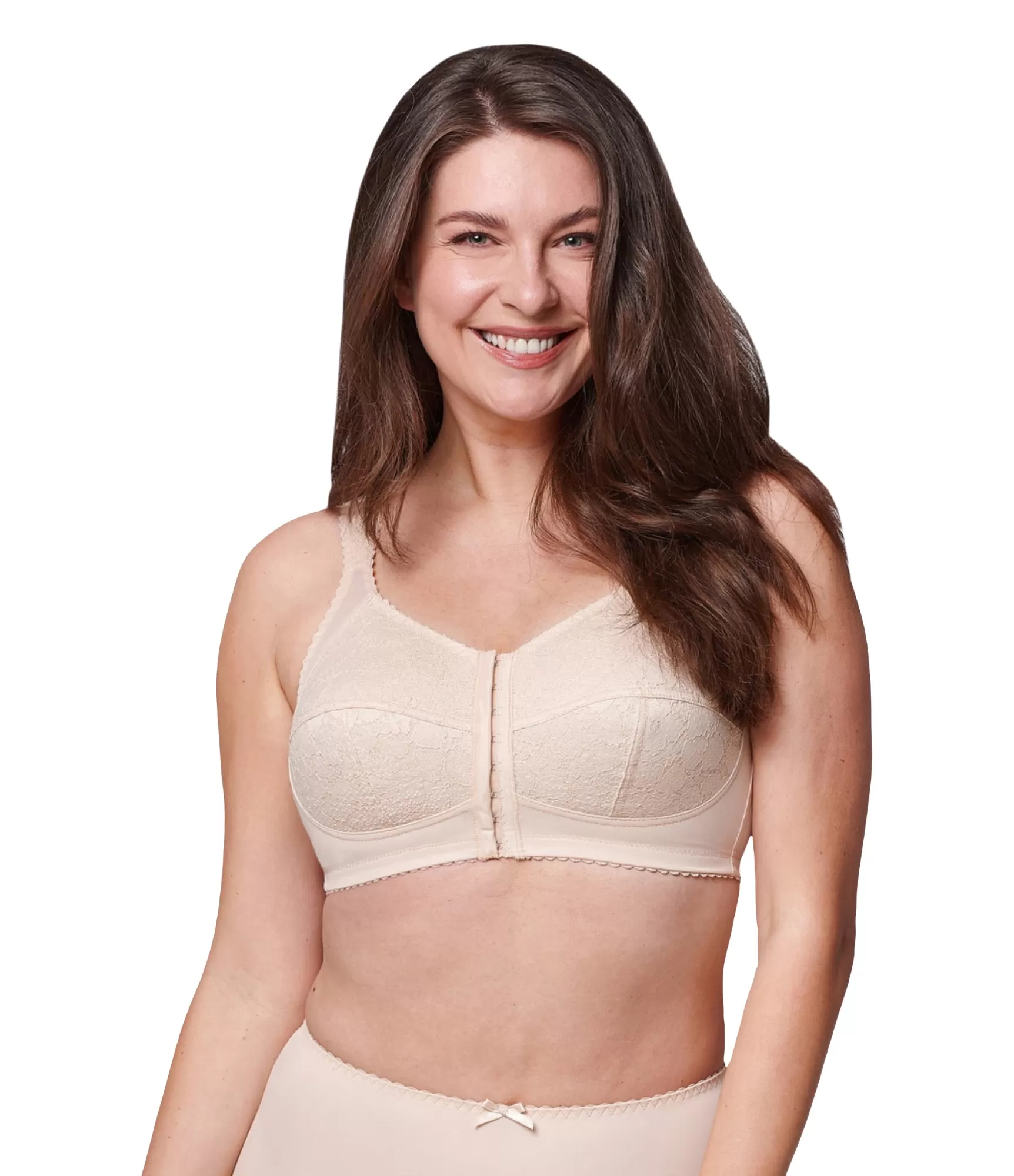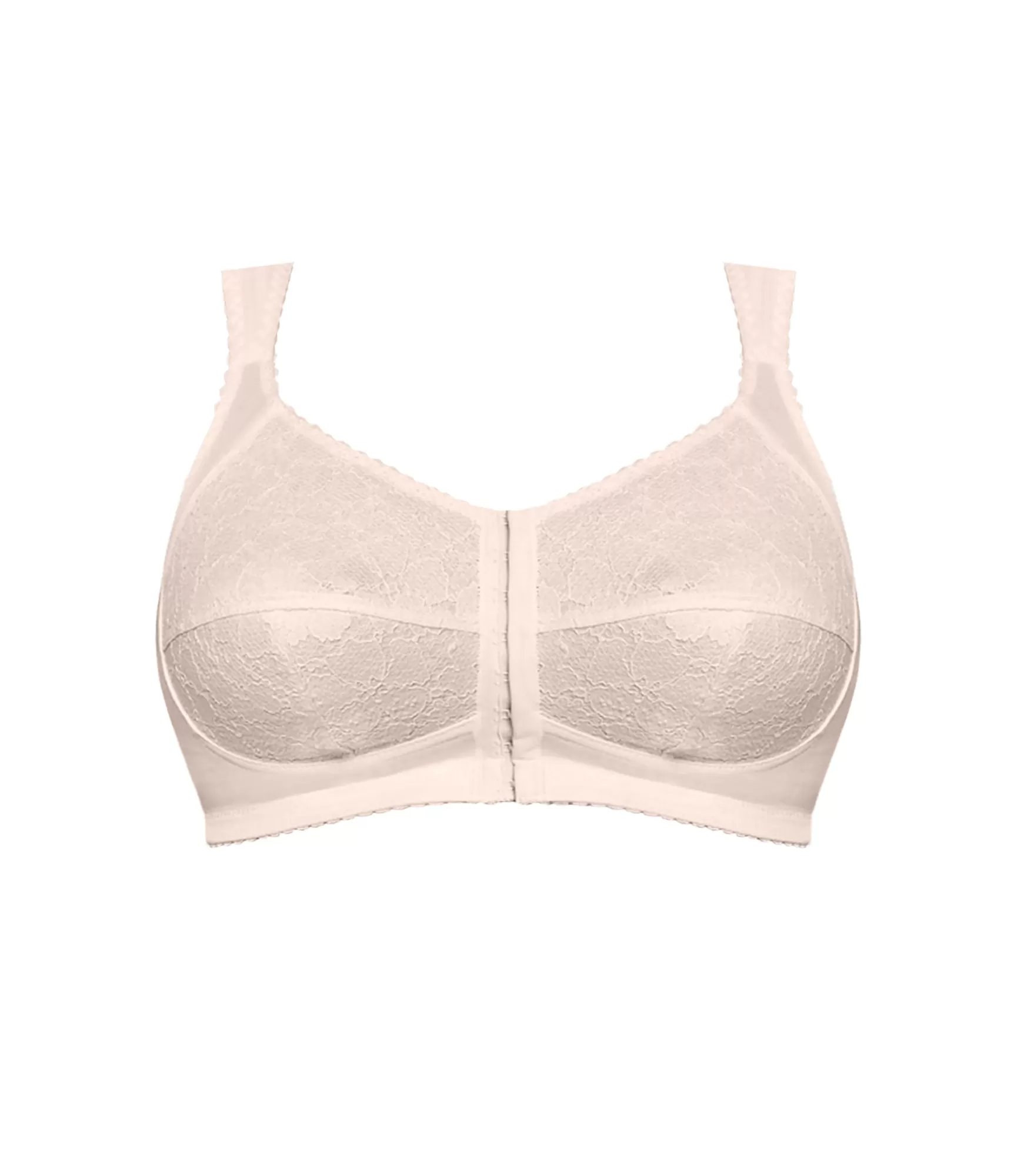 Ērts un stabils krūšturis bez stieples, aizdare priekšpusē – tā ir ideāla izvēle sievietēm ar lielākām krūtīm. Pateicoties īpašajam muguras daļas dizainam, jūsu mugura ir mazāk nogurusi, jo palīdz to noturēt taisnāku. T-veida, augsti krūštura kausiņi veido konusveida krūšu siluetu. Krūštura apakšdaļa ir dekorēta ar mežģīnēm un papildus pastiprināta ar plānu kokvilnas oderi. Krūštura siksnas ir platas, reljefas siksnas nodrošina komfortu, neiegriežas, nespiež un patiešām atbalsta lielāku krūti.