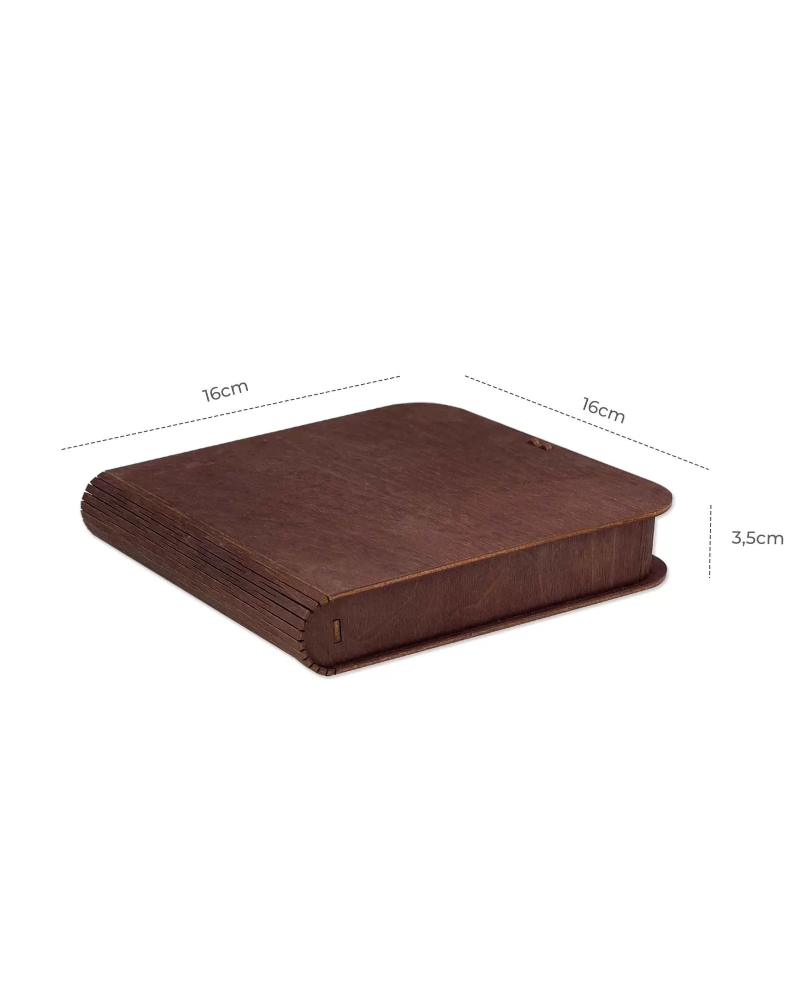 Koka kaste iš izmēri: 16 x 16 x 3,5 cm.