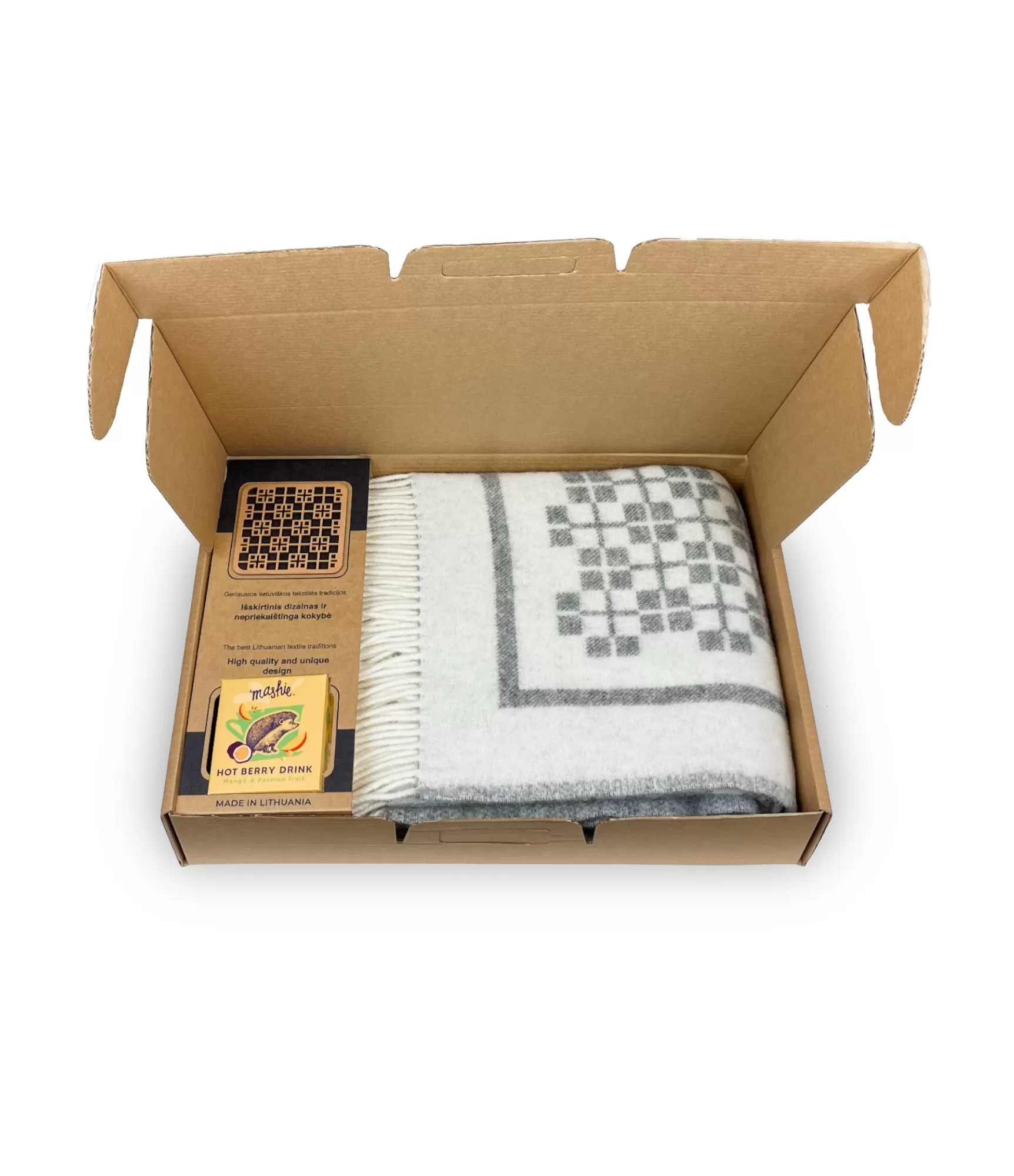 Tehnoloģija: žakarda aušana. Krāsa: balta/pelēka.