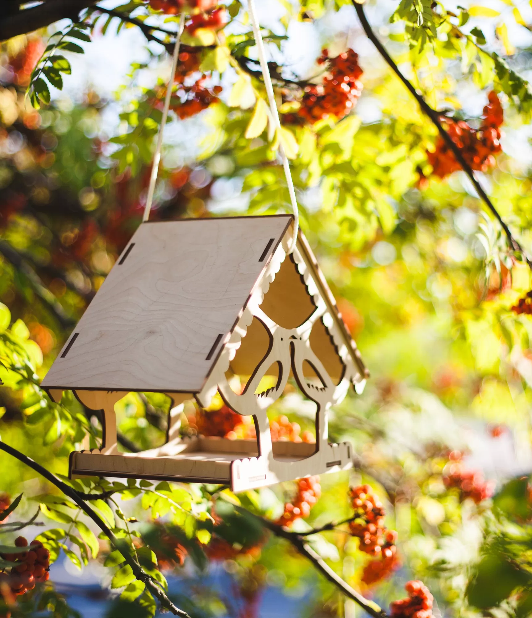 Dabiska, nekrāsota putnu barotava ar jumtiņu, izgatavota no dabīga bērza saplākšņa. Jumtiņā atstātas atveres auklas ievēršanai un ērti piekāršanai.