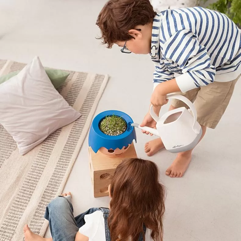 Pateicoties vītņu tipa laistīšanas sistēmai, mazos augus var ievietot podā tieši ar podu, kurā tie tika audzēti, tādējādi izvairoties no sarežģītām pārstādīšanām! Ievietots audzēšanas poda apakšā, vītņu tipa stienis vienmērīgi piegādā mitrumu saknēm. Lielās, apaļās OJO acis atgādina PLAYMOBIL rotaļlietām raksturīgo izskatu. Tās parāda, cik daudz ūdens palicis rezervuārā un ļauj bērniem iemācīties sekot līdzi savu augu mitruma līmenim. Ja interaktīvās acis ir zilas, tas norāda, ka ūdens rezervuārs ir pilns.