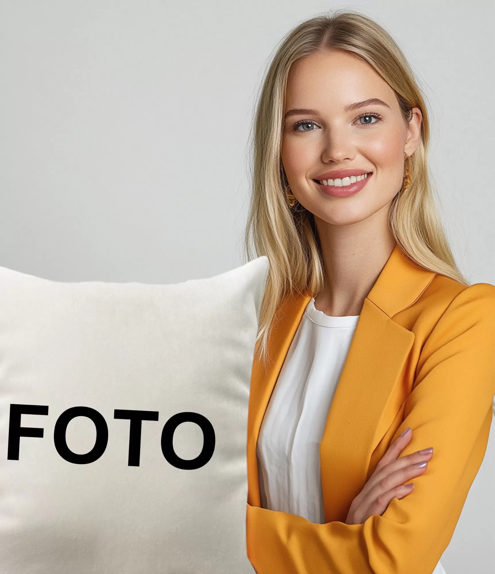 Vidēja izmēra spilvens, 45 x 45 cm, nodrošina vairāk vietas un ļauj attēlot ne tikai seju, bet arī ķermeņa augšdaļas daļu. Tas ir ideāli piemērots portretiem, kuros sieviete pozē ar mājdzīvnieku, ziediem vai citiem nepieciešamiem elementiem.
