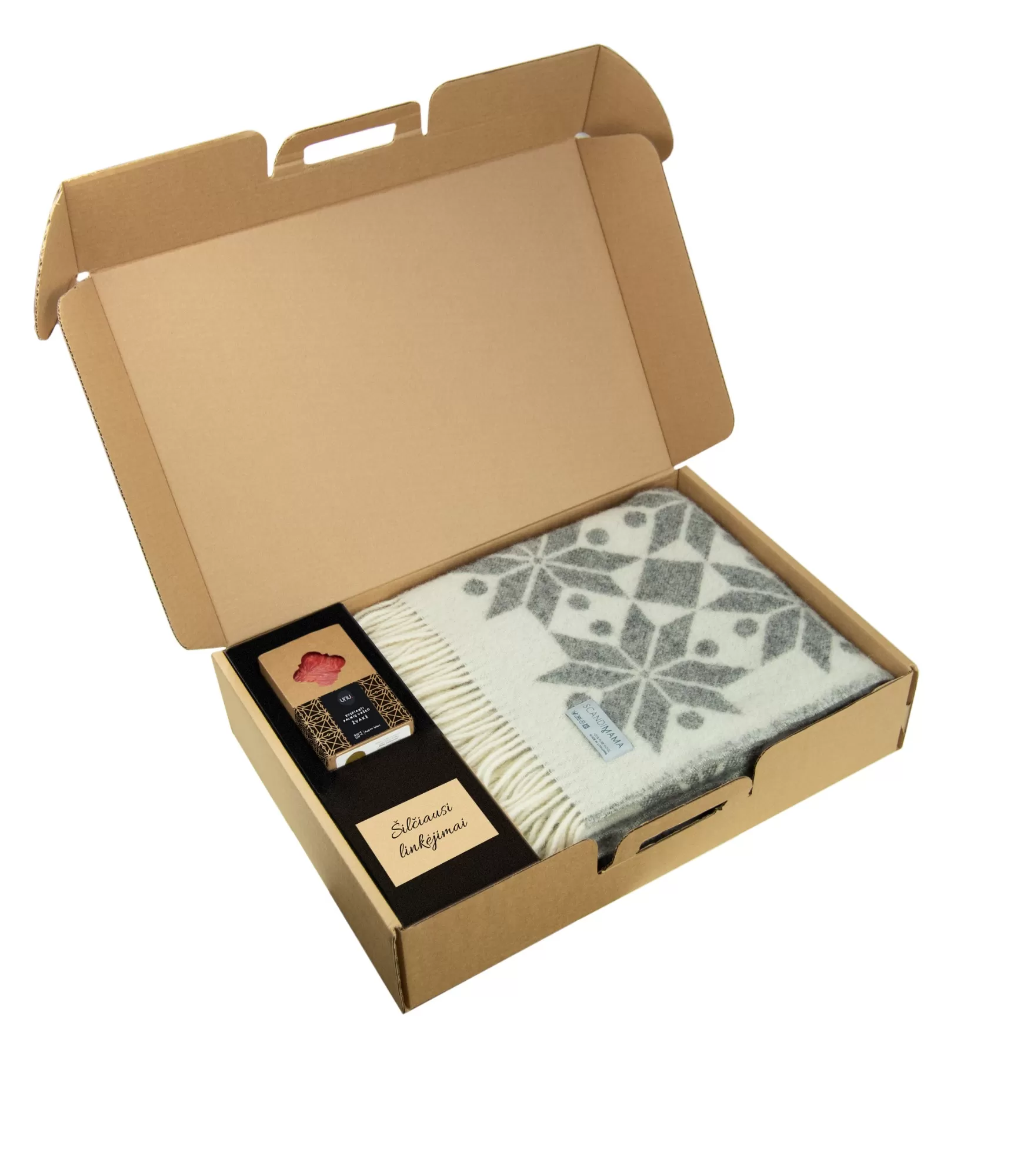 Vilnas pleda un smaržojošās sveces komplekts ir mājīga, silta un vienmēr noderīga dāvana, kas piešķir nozīmi dāvanai.