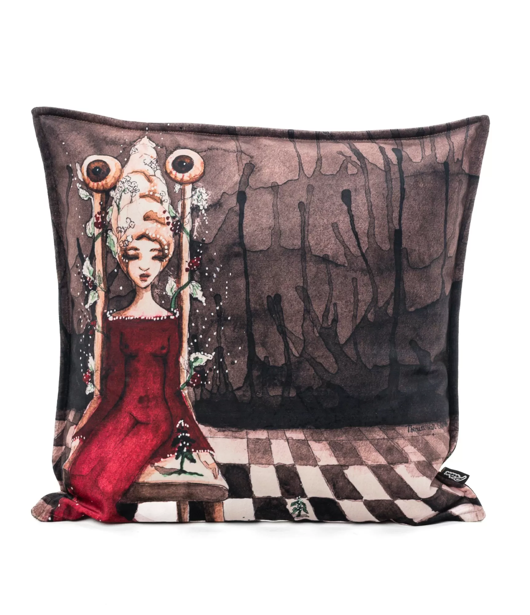 Spilvena sānu dizains atšķiras. Raksts ir uzdrukāts uz abām spilvena pusēm.
