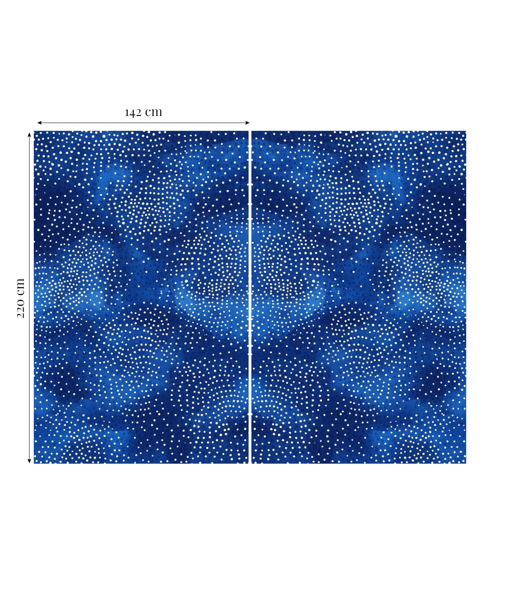 Aizkaru komplekta kopējais platums ir aptuveni 284 cm, katra paneļa platums ir aptuveni 142 cm.