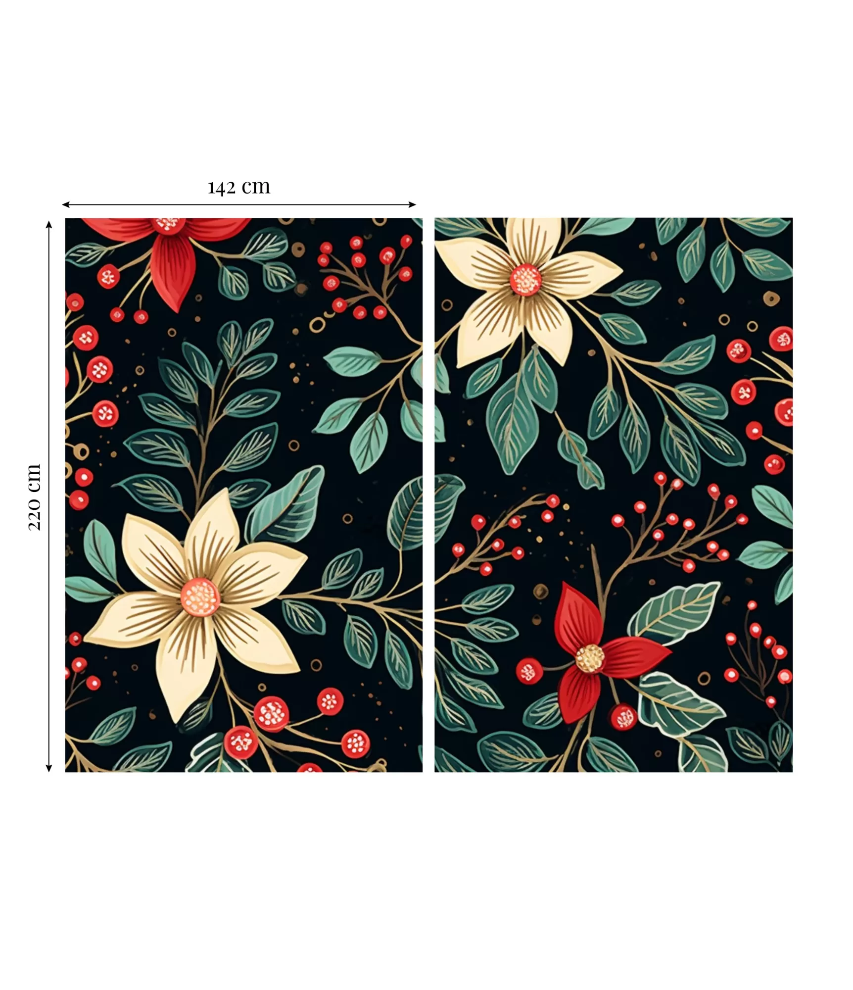 Aizkaru komplekta kopējais platums ir aptuveni 284 cm, katra paneļa platums ir aptuveni 142 cm.