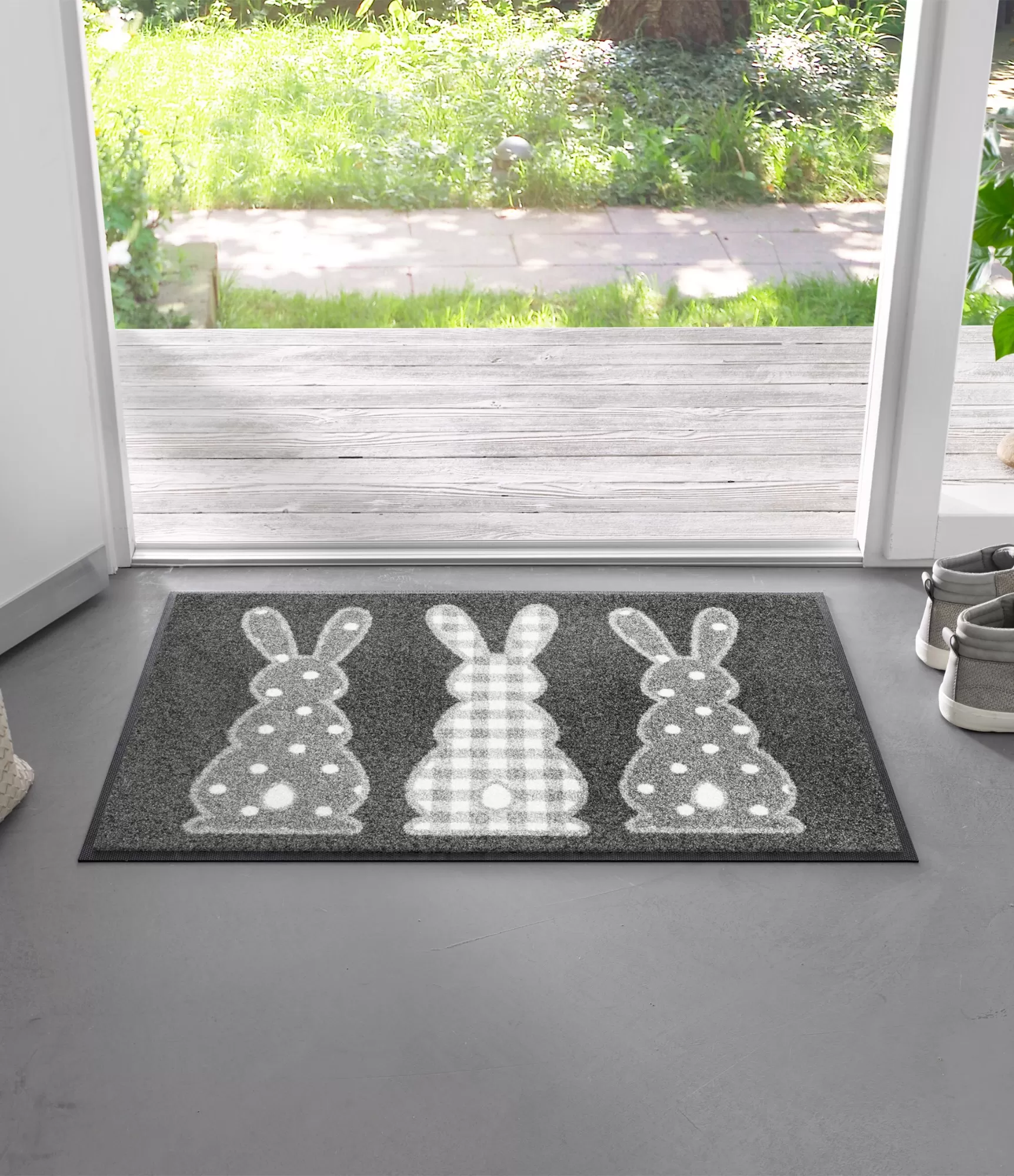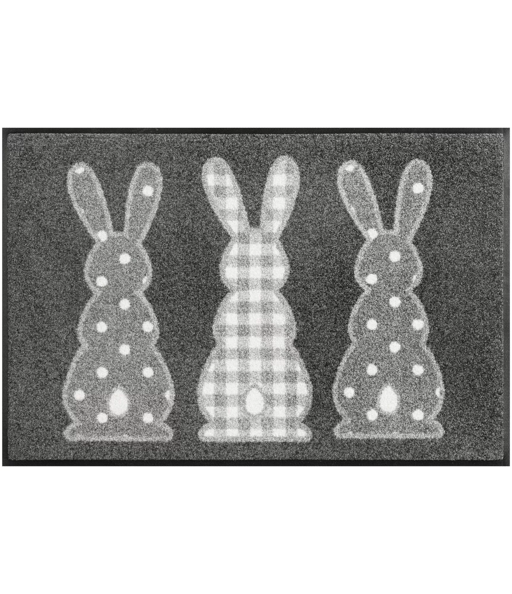 Durvju paklājiņš "Bunny Trio" – tas ir vairāk nekā tikai praktisks priekšmets pie sliekšņa; tas ir emocionālu stāstu veidojošs elements. Trīs jauki, minimālisma stilā ieturēti zaķīši piešķir mājas ieejai smalku rotaļīgumu un mājīgumu. Neitrālais fons un skaidrās figūru līnijas ļauj šim izstrādājumam viegli iekļauties dažādās telpās – no moderna skandināvu stila priekšnama līdz Provansas stila verandai vai pat bērnu istabai. Izgatavots no izturīga poliamīda, tas ne tikai priecē acis, bet arī efektīvi aiztur netīrumus, un plānais, tikai 7 mm augstais profils nodrošina, ka tas netraucēs veramām durvīm. Tā ir lieliska izvēle tiem, kas vēlas, lai mājas mājīgums un īpaša uzmanība detaļām sāktos jau pirms ieiešanas pa durvīm. Šis produkts ir ideāli piemērots ne tikai Lieldienu periodam, bet arī visu gadu, izplatot siltu un draudzīgu atmosfēru.