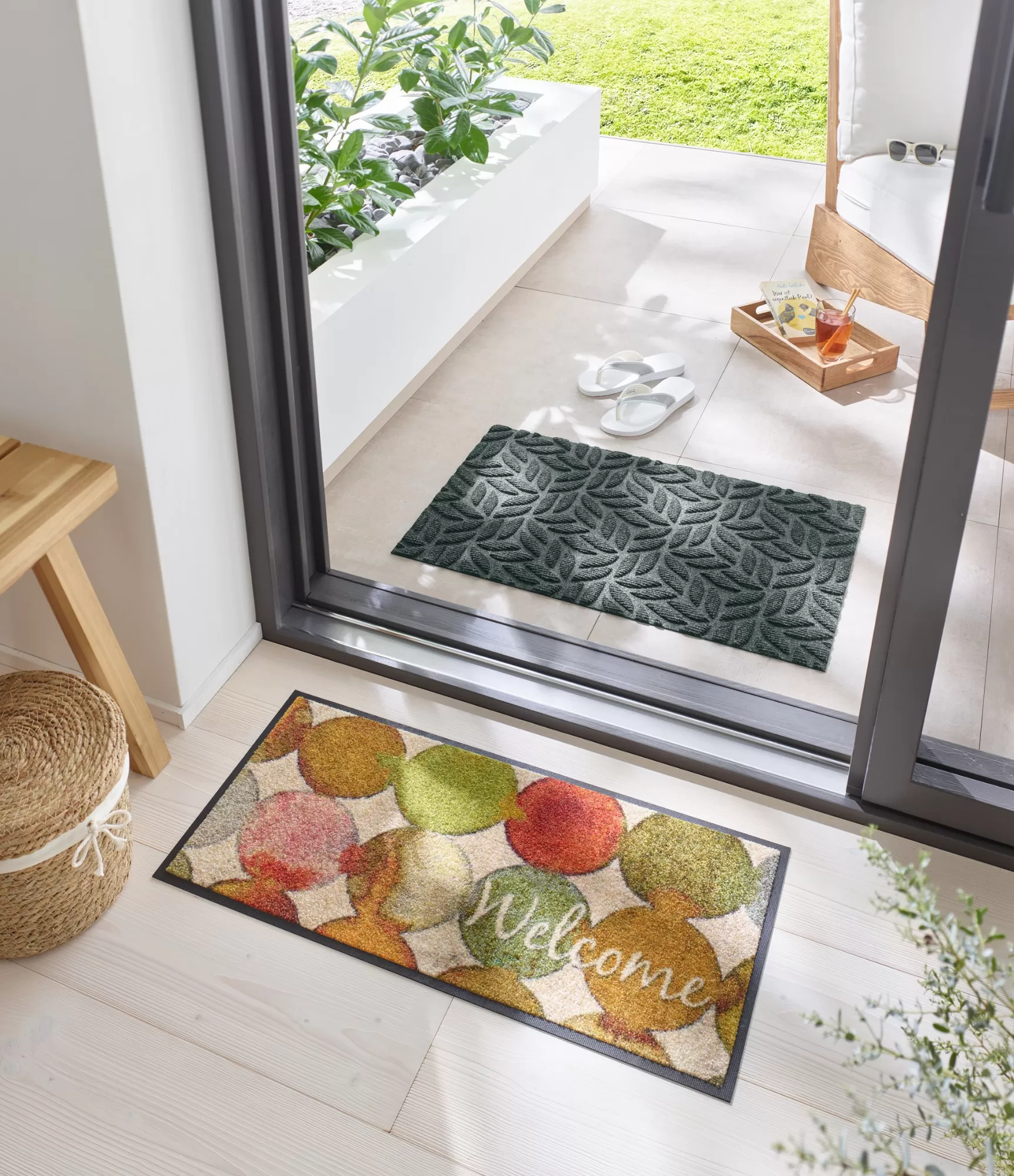 Spilgts durvju paklājs mājīgam sagaidīšanai