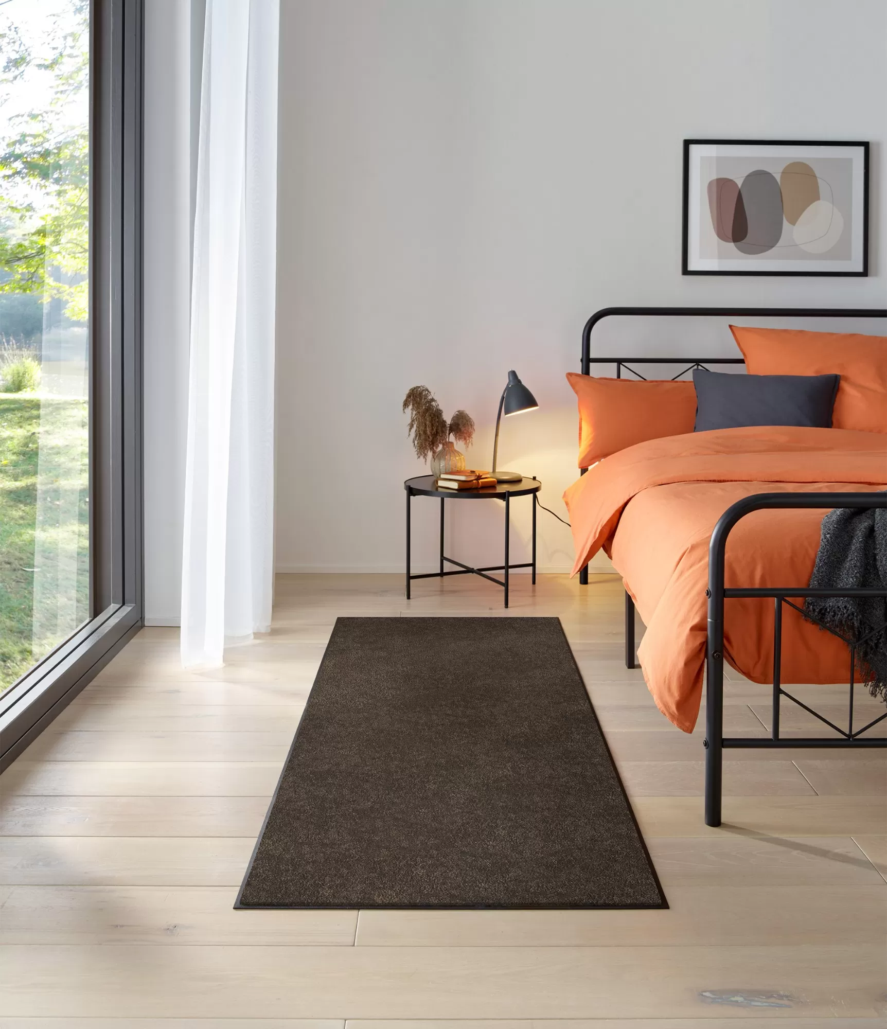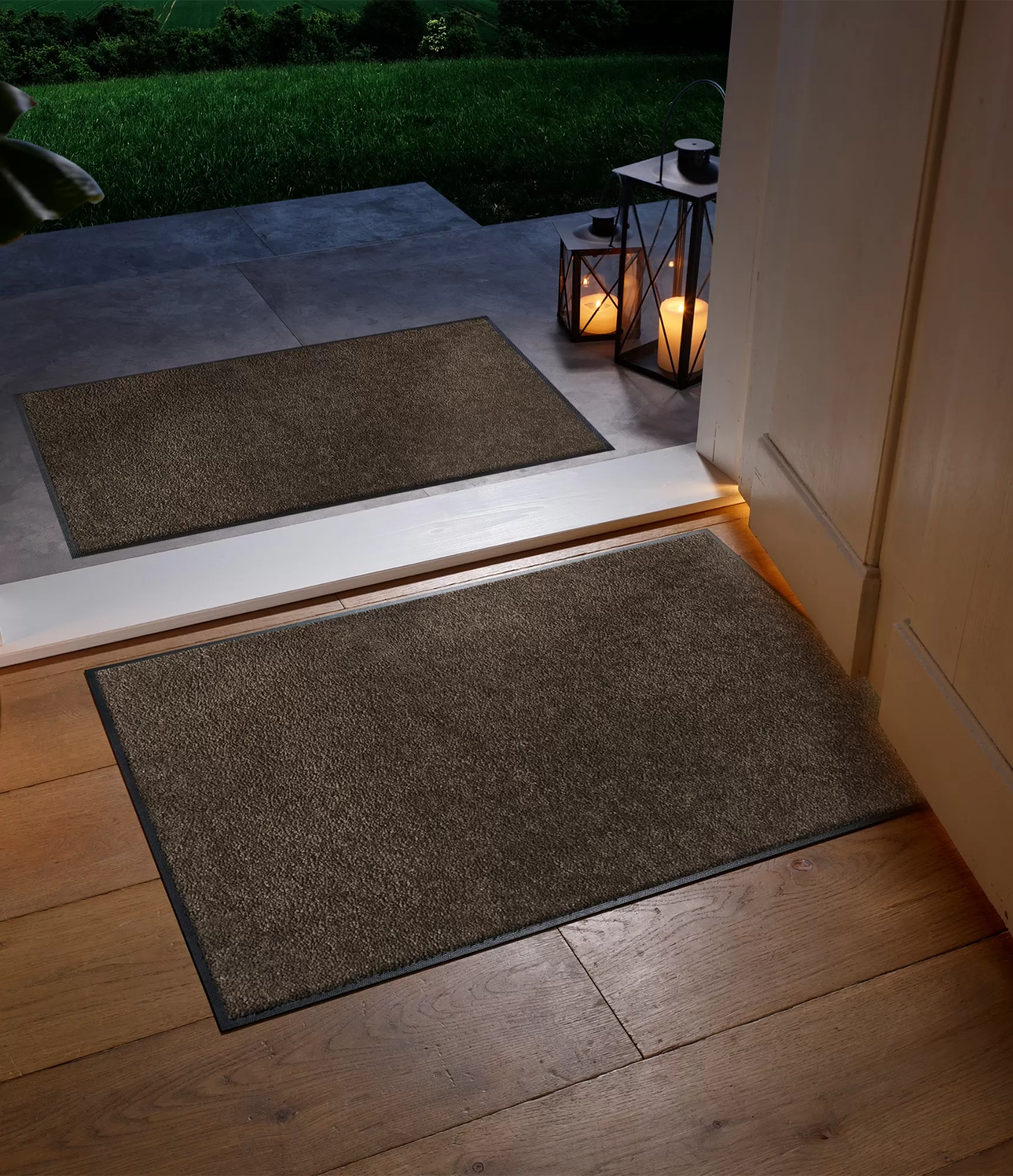 Durvju paklāji, paklāju celiņi un paklāji „Espresso Brown“ izceļas ar piesātinātu, dziļu brūno toni, kas atgādina dabiskus koka un zemes toņus. Šāda krāsa piešķir interjeram siltumu, stabilitāti un mājīguma sajūtu, padarot telpu harmoniskāku un līdzsvarotāku. Tas ir praktisks risinājums ikdienas lietošanai – tumšāka virsma lieliski maskē netīrumus un ilgāk saglabā sakoptu izskatu.