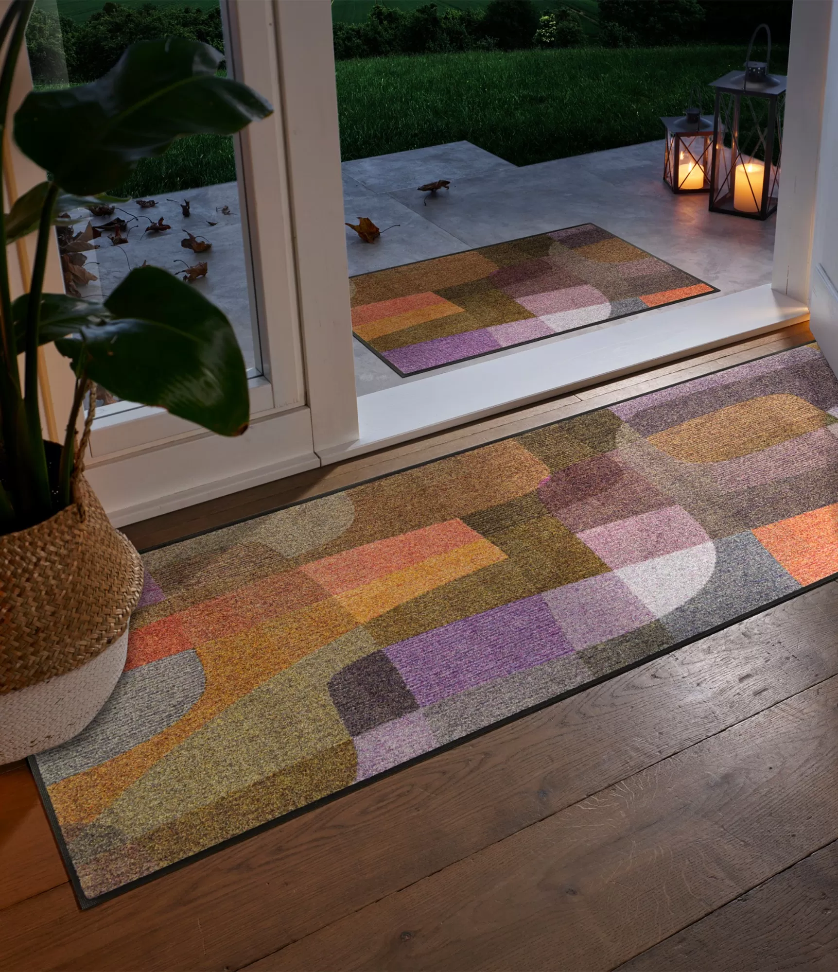 Modernais durvju paklājs „Future Mind“ izceļas ar abstraktu, mūsdienīgu rakstu, kurā saplūst dažādu formu un krāsu bloki. Maigi pārejošie zemes, violetie un brūnganie toņi veido dinamisku, bet vienlaikus harmonisku kopskatu. Neregulārās formas un slāņveida efekts piešķir paklājam īpašu raksturu, padarot to ne tikai par praktisku, bet arī dekoratīvu interjera akcentu.