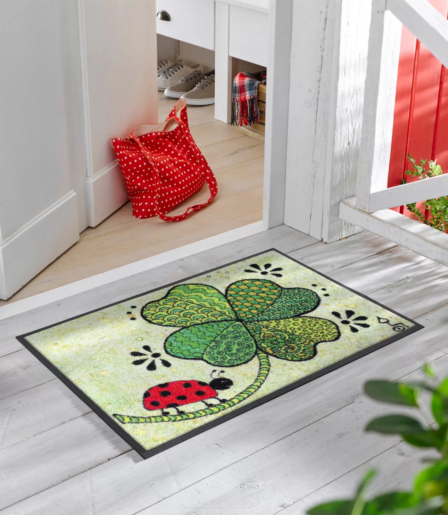 Durvju paklājs Mārīte ir ne tikai praktisks, bet arī simbolisks dāvanas variants. Četrlapu āboliņš un mārīte ir saistīti ar veiksmi, tāpēc šāds paklājs lieliski piemērots mājokļa iekārtošanas svētkos, dzimšanas dienā vai kā mājīgs pārsteigums tuviniekiem.