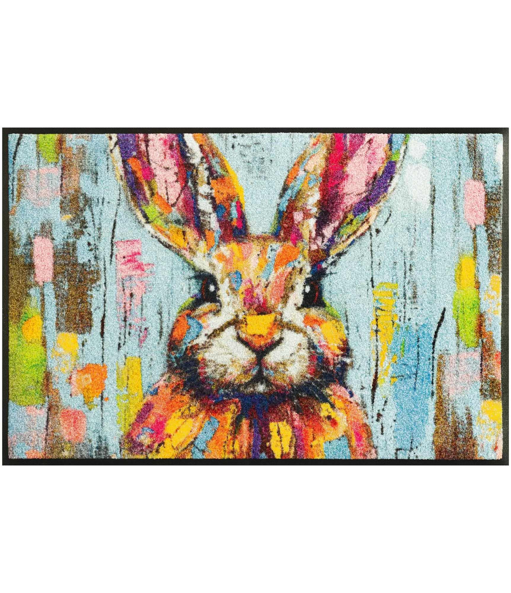 Durvju paklājiņš "Sammy" izceļas ar krāsainu un rotaļīgu dizainu, kas uzreiz rada noskaņojumu, tiklīdz ieejat telpā. Mākslinieciskais truša motīvs un drosmīgie krāsu triepieni piešķir ieejai raksturu, tāpēc šis risinājums ir lieliski piemērots gan modernām mājām, gan radošām telpām. To var viegli pielāgot ne tikai galvenajām durvīm, bet arī terasei, balkonam vai pat iekšējām ejām starp istabām, kur vēlaties vairāk dzīvīguma un oriģinalitātes.