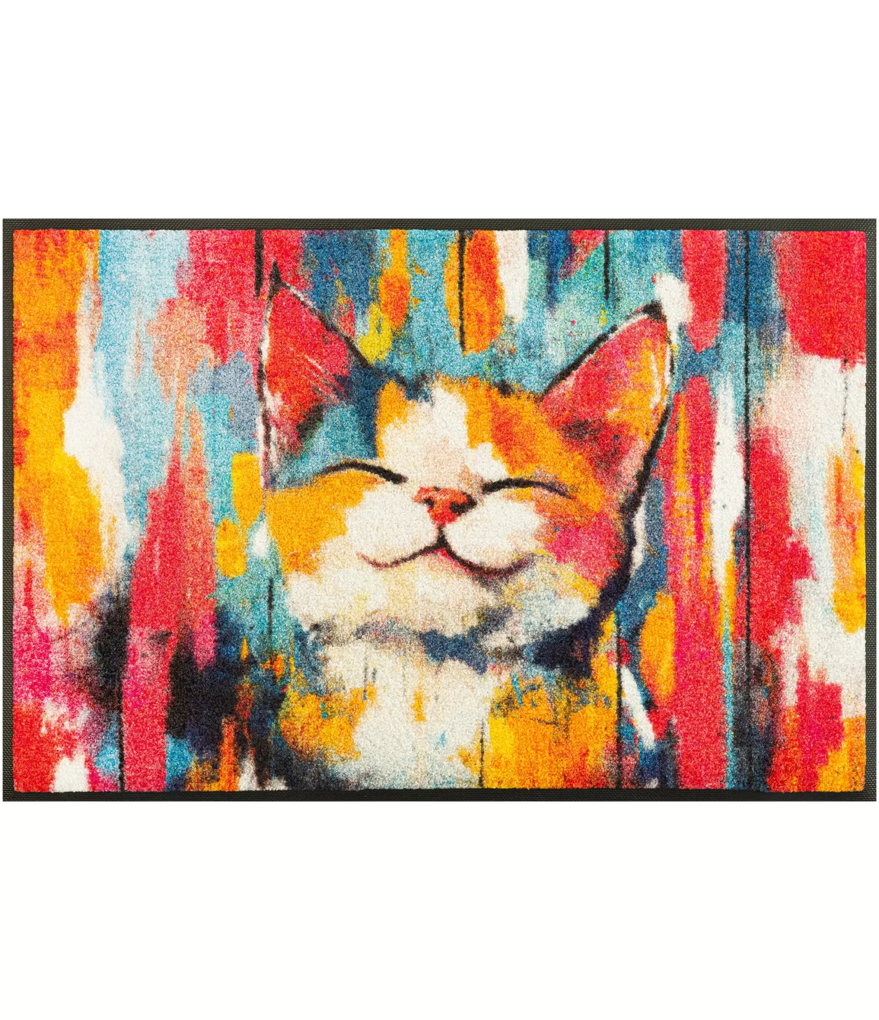 Durvju paklājs „Tallulah“ izceļas ar spilgtu, māksliniecisku dizainu, kas uzreiz piesaista uzmanību un piešķir ieejai dzīvīgumu. Krāsu kombinācija un rotaļīgais kaķa motīvs rada pozitīvu noskaņu, tāpēc šis durvju paklājs kļūst ne tikai par praktisku, bet arī par izteiksmīgu interjera akcentu. Tas lieliski piemērots gan mājas iekšpusē, gan pie ieejas vai uz terases, kur vēlas vairāk krāsu un rakstura.