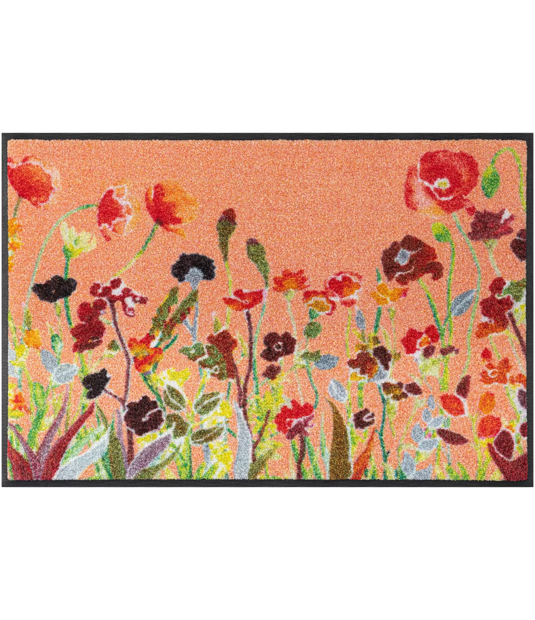 Mazgājamais durvju paklājs „Wildflowers“ izceļas ar vieglu, dzīvīgu ziedu motīvu, kas mājas ieejā ienes krāsas un dabiskumu. Siltais fons un daudzkrāsainie pļavas ziedi rada mājīgu, nepiespiestu noskaņu. Dizains izskatās dzīvs, bet saglabā skaidru struktūru, tāpēc viegli iekļaujas dažādos interjeros.