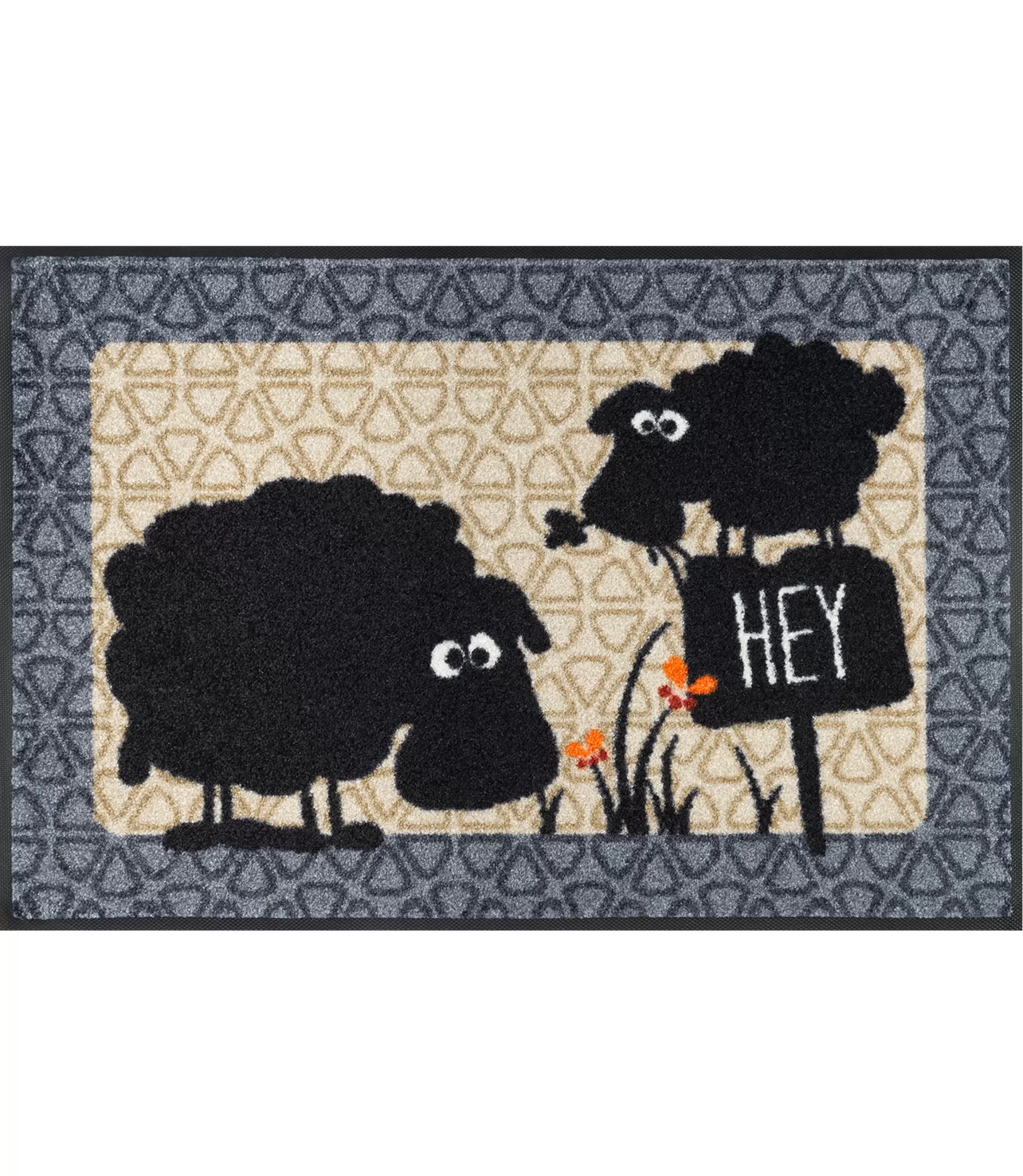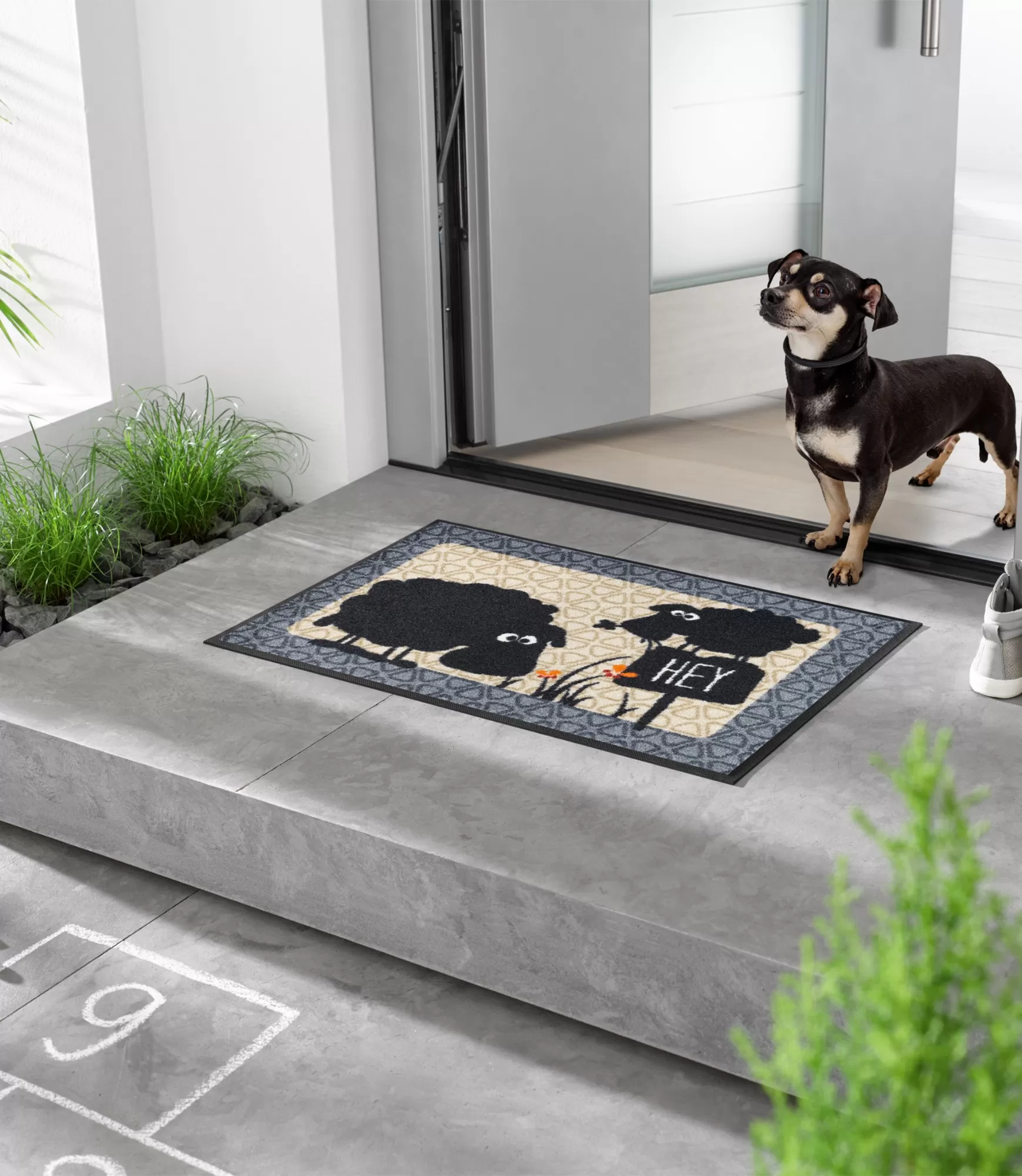 Durvju paklājs Gertrud&Elsbeth uzreiz piesaista uzmanību ar savu jautro un nedaudz humoristisko dizainu. Kontrastējošās krāsas, stilizētās figūras un smalkie grafiskie elementi piešķir telpai raksturu un viegluma sajūtu. Šāds izstrādājums lieliski piemērots tiem, kuri vēlas, lai ieeja mājās būtu ne tikai sakopta, bet arī izteiksmīga.