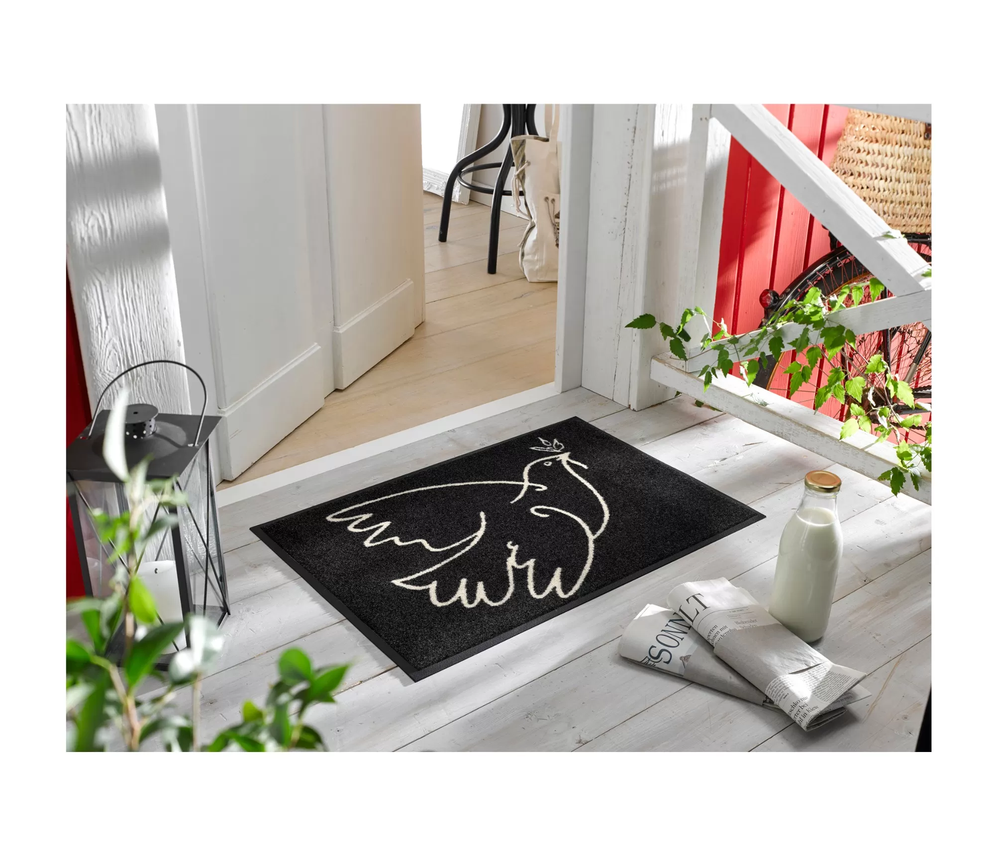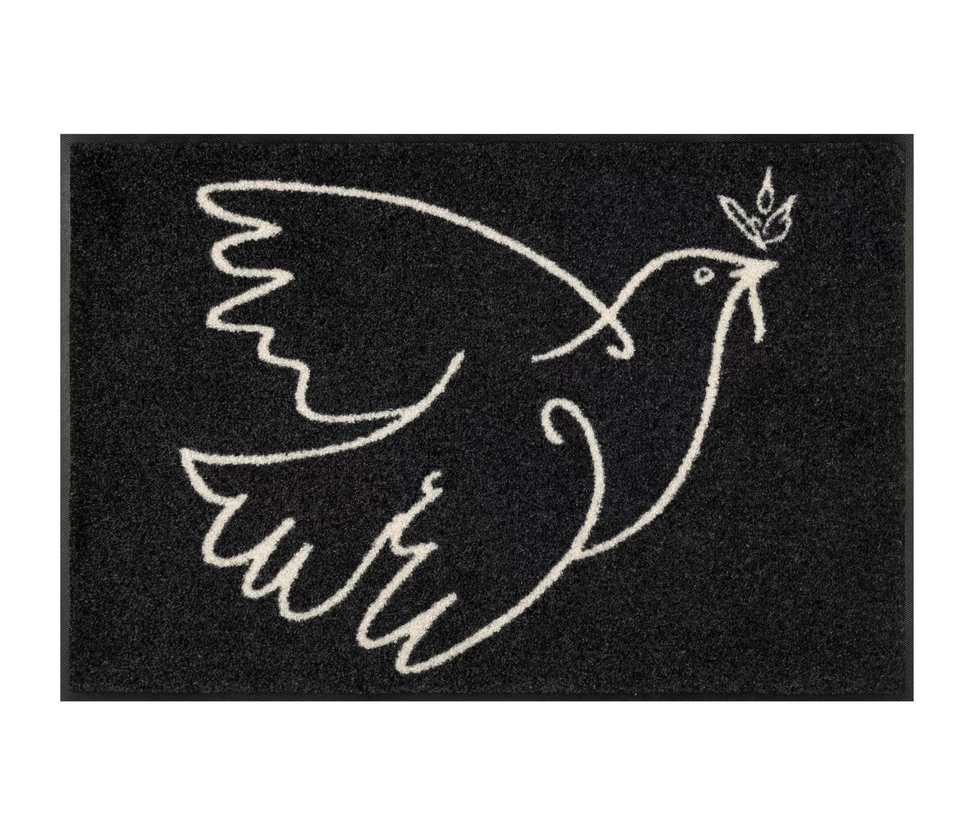 Durvju paklājs Peace Dove izceļas ar tīru, vieglu dizainu un skaidru vēstījumu. Lidojošā balodīte ar olīvkoka zariņu ir miera, harmonijas un sirsnīgas sagaidīšanas simbols, kas smalki attēlots kontrastējošā melnbaltā krāsu kombinācijā. Tā ir izvēle tiem, kas novērtē vienkāršību, bet vēlas, lai pat mazākā detaļa būtu ar nozīmi.