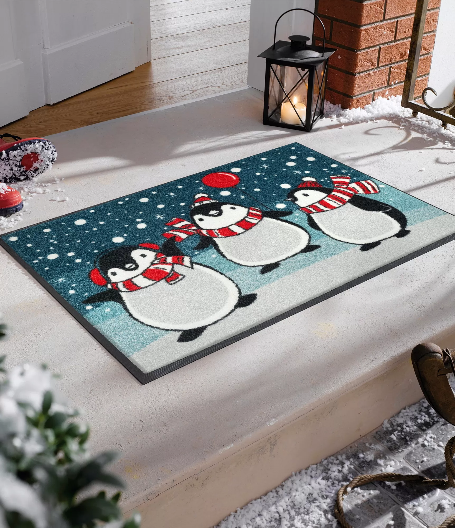 Durvju paklājs Pingus izceļas ar dzīvīgu un viegli atpazīstamu dizainu, kas uzreiz piešķir mājām vairāk noskaņas. Trīs pingvīni ar spilgti sarkanām šallēm, sniegots fons un kontrastējošas krāsas veido skaidru ziemas ainu, kas izskatās silta un mājīga. Šis izstrādājums lieliski papildina svētku noskaņā iekārtotus mājokļus un kļūst par dabisku interjera daļu aukstajā gada laikā. Tas viegli pielāgojams dažādās telpās – ne tikai pie ieejas durvīm, bet arī koridorā, virtuvē vai pie terases. Tas ir risinājums, kas palīdz radīt vienotu, dzīvīgu un mājīgu vidi.