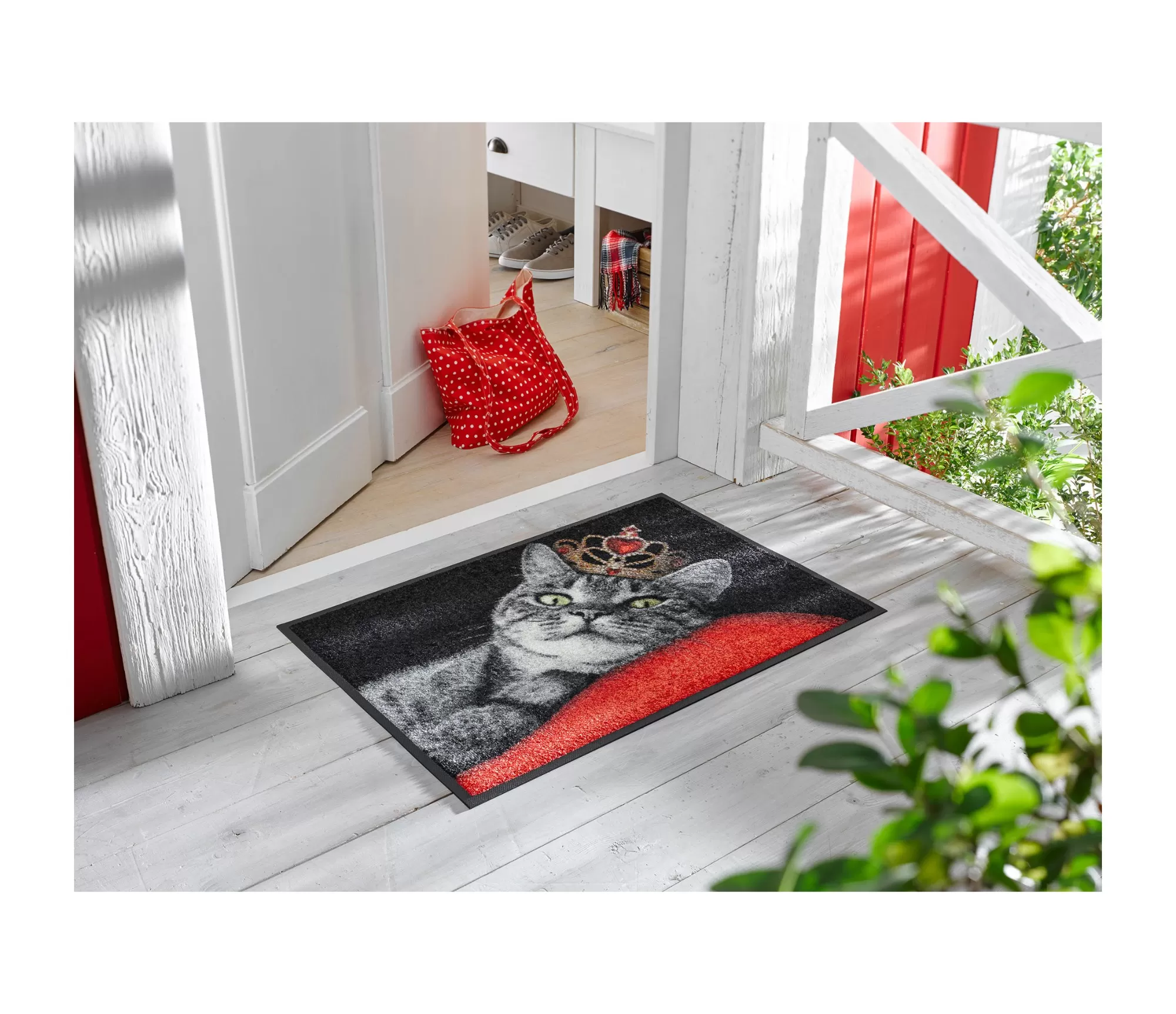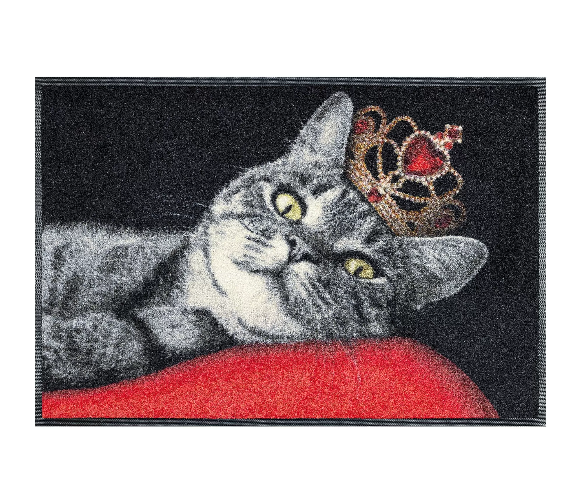 Durvju paklājs Royal Cat nav tikai praktisks priekšmets, bet gan īsts interjera tēls. Kaķis ar kroni, ērti iekārtojies uz mīksta spilvena, rada vieglu ironiju un elegances sajūtu vienlaikus. Tas ir dizains, kas piesaista uzmanību un piešķir ieejai raksturu – kā smalka norāde, ka šeit dzīvo cilvēki ar gaumi.