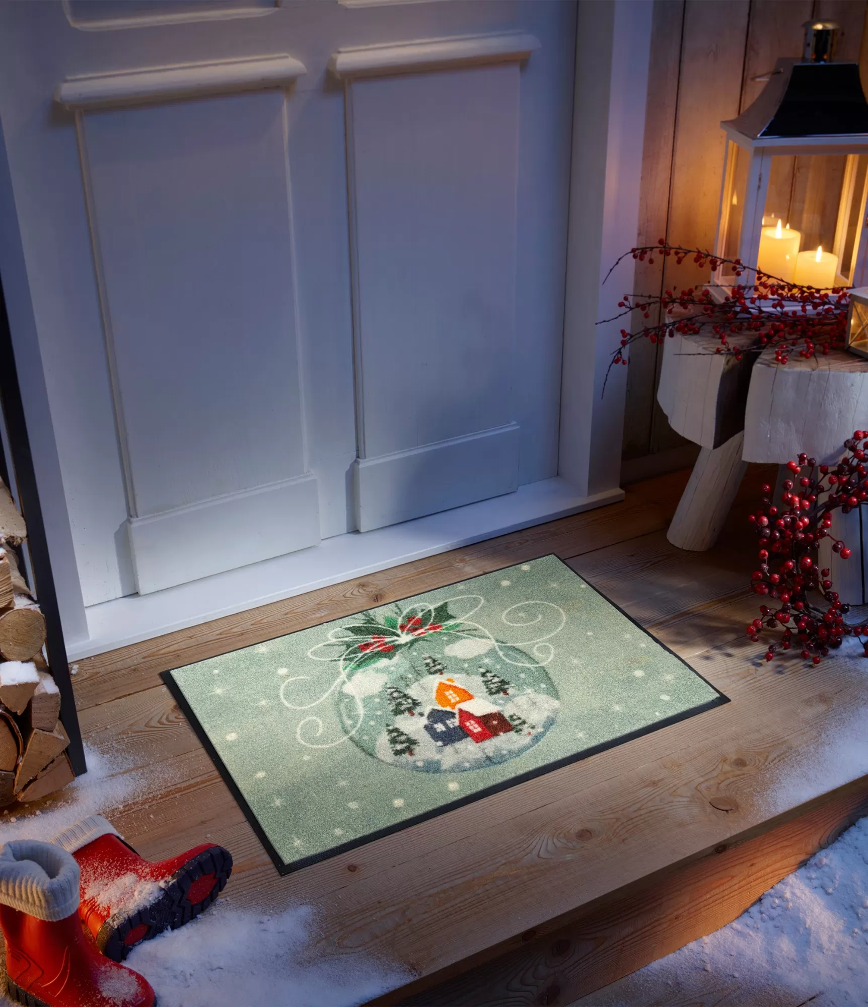 Durvju paklājs Snow Globe izceļas ar maigu, ziemīgu dizainu, kas viegli iederas dažādos mājas interjeros. Smalka krāsu palete, sniega lodītes motīvs un mazo mājiņu attēlojums rada mierīgu un siltu noskaņu. Tas ir vizuāli viegls, nepārslogots risinājums, kas papildina vidi un piešķir tai vairāk dzīvīguma aukstajā gada laikā.