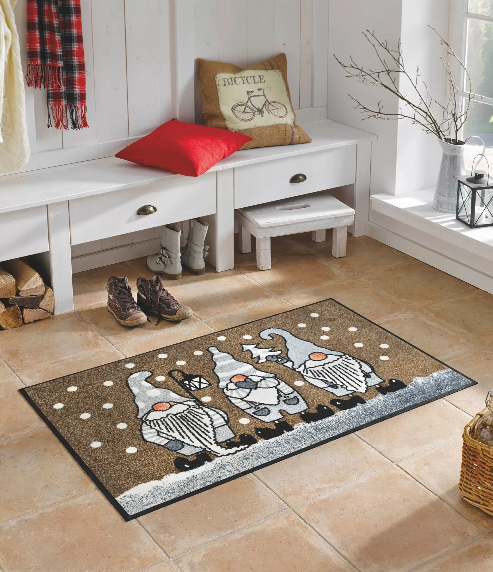 Ziemas sezonā šāds paklājs kļūst ne tikai par praktisku risinājumu, bet arī par mājīguma daļu. Winter Gnomes dizains palīdz radīt siltāku un dzīvīgāku atmosfēru, kas īpaši piemērota svētku laikam, bet saglabā aktualitāti visu ziemu. Tā ir lieliska dāvanas ideja – praktiska, stilīga un viegli pielāgojama dažādiem mājokļiem. Šāds risinājums priecē ne tikai ar izskatu, bet arī ar ikdienas lietošanu, kad pēc garas dienas gribas vairāk mājīguma.