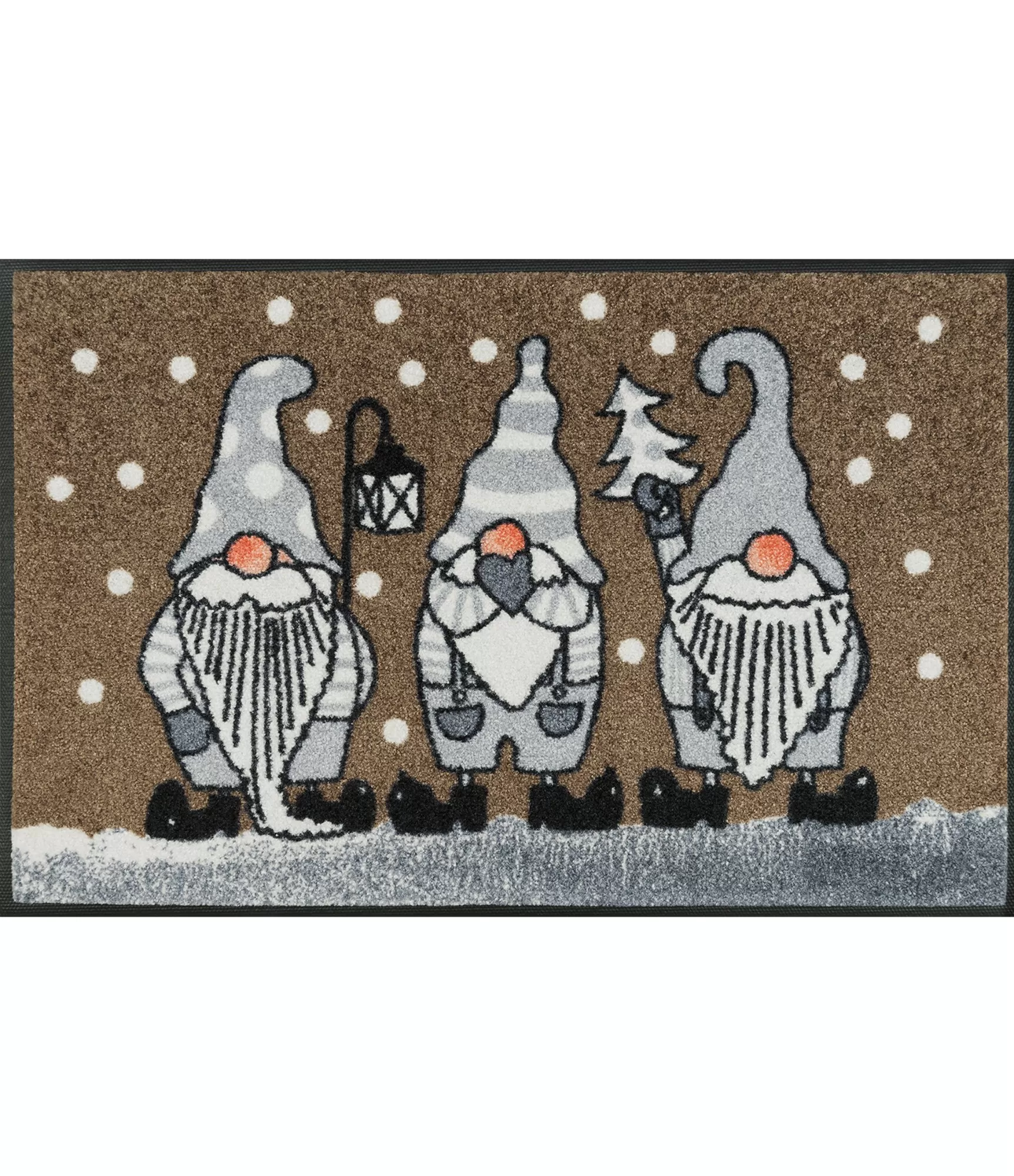 Durvju paklājs Winter Gnomes ir stilīga un noskaņota izvēle, kas uzreiz rada siltu un mājīgu ziemas atmosfēru, tiklīdz ieejat mājās. Smalkas krāsas, viegli atpazīstami rūķīšu silueti un maigs sniega fons piešķir interjeram dzīvīgumu, vienlaikus saglabājot estētiku, kas viegli saskaņojama ar dažādiem mājas stiliem. Šāds paklājs lieliski piemērots ne tikai pie ārdurvīm – tas skaisti izskatās koridorā, pie terases durvīm, virtuvē vai pat vannas istabā, kur gribas nedaudz sezonāla mājīguma. Tā ir detaļa, kas dabiski iekļaujas mājas vidē.